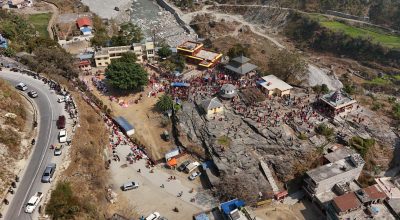 गलेश्वर, (म्याग्दी) । भिर महको निकालेको दृश्य छायाङ्कन गर्न नेशनल जियोग्राफीको टोलीसहित स्पेन र जर्मनीका नागरिक गरी १६ जना विदेशी