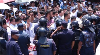 काठमाडौँ । चिकित्सकहरुले काठमाडौँ केन्द्रीत प्रदर्शनलाई आज पनि जारी राखेका छन् । कार्यस्थलमा सुरक्षाको माग गर्दै चिकित्सकहरुले शुक्रबार पनि काठमाडौंमा