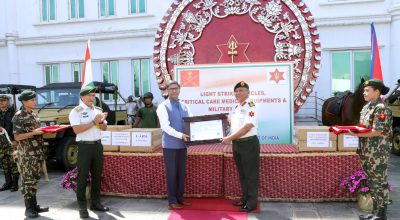 काठमाडौँ । भारतीय सरकारले नेपाली सेनालाई केही थान सवारीसधान, घोडा र विपद्पछिको घटनाको अनुसन्धान कार्यमा प्रयोग हुने कुकुर सहयोगस्वरुप उपलब्ध