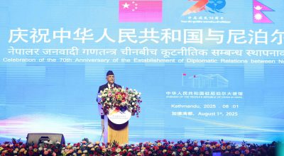 नेपाल र जनवादी गणतन्त्र चीनबीच कूटनीतिक सम्बन्ध स्थापना भएको ७०औं वार्षिकोत्सवको विशेष अवसरमा आज आयोजित कार्यक्रममा प्रधानमन्त्री ओलीले बितेका दशकमा,