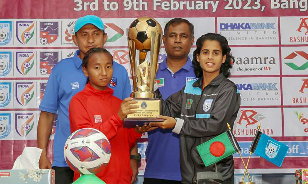 बंगलादेशका लागि शाहिदा अक्टर रिपा र शामसुनाहर जुनियरले एक–एक गोल गर्दै नेपालविरुद्ध २–० को अग्रता बनाए ।