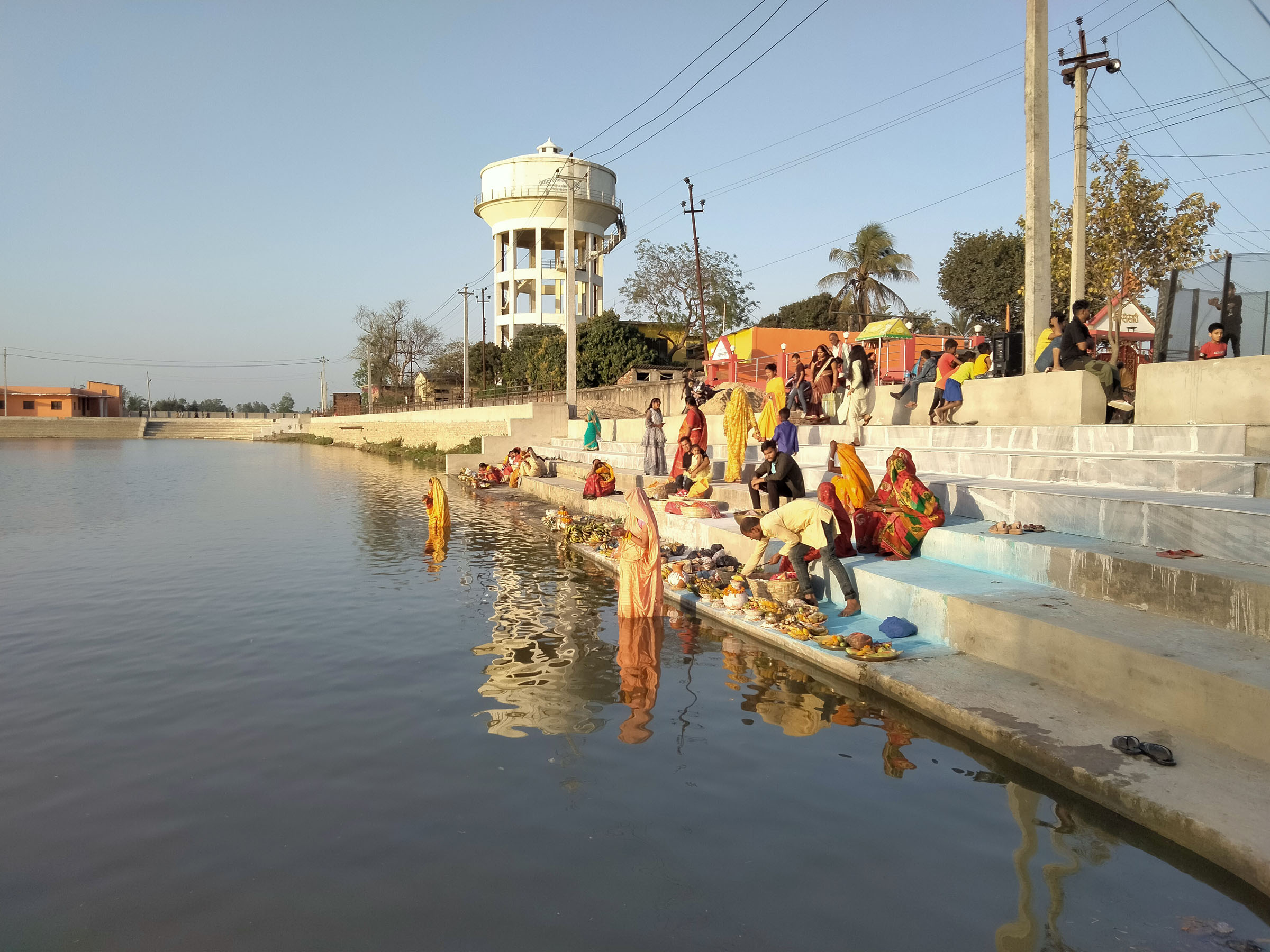 अस्ताउँदो सूर्यलाई अर्घ दिँदै चैती छठ मनाइँदै