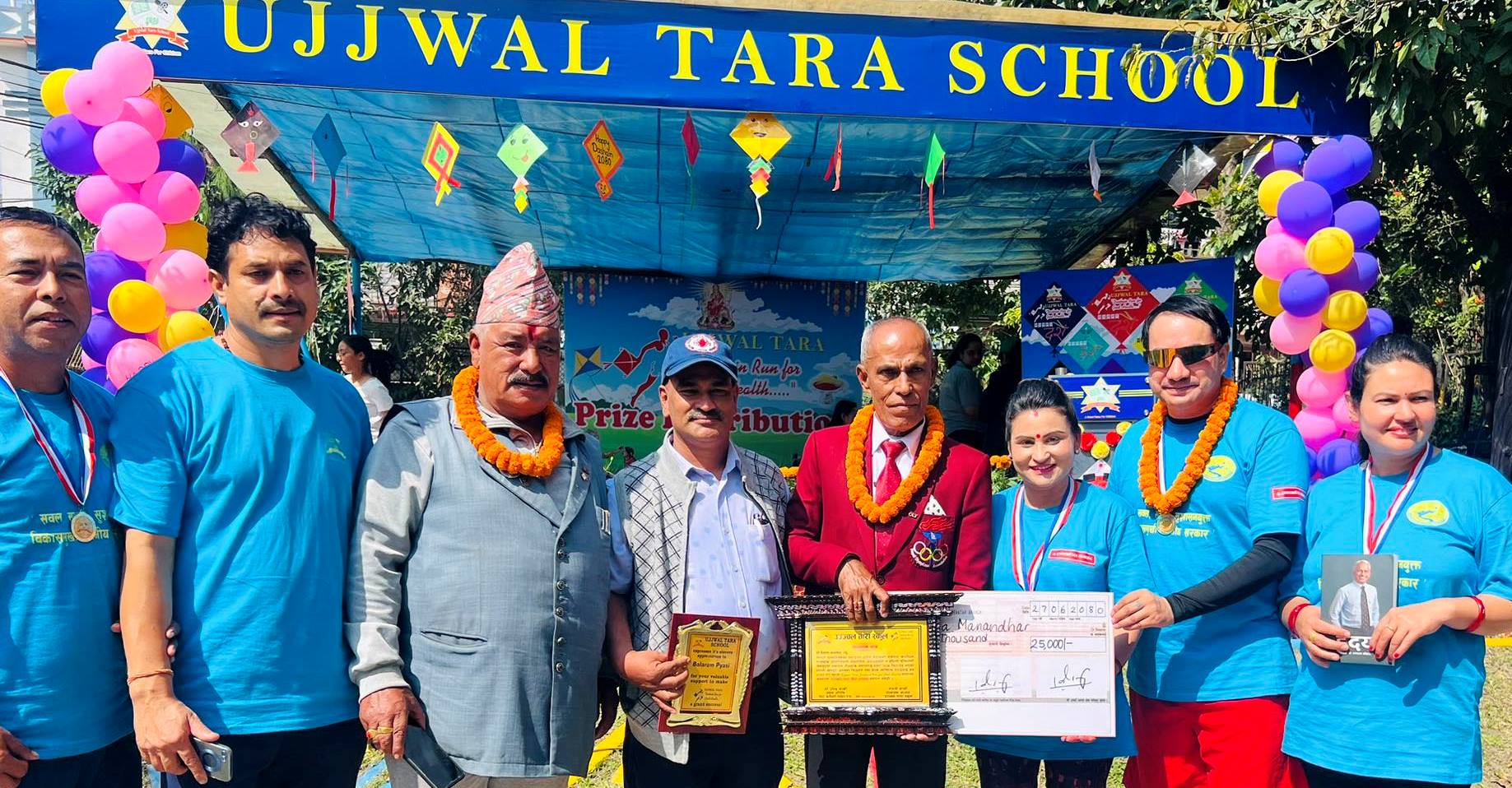 विद्यालयले गत असोज ८ गते घोषणा गरेको १५ हजार ५५५ रुपैयाँको राशीमा अरु ९ हजार ४४५ रुपैयाँ थपेर २५ हजार रुपैयाँ सहितको सो सम्मान ‘उज्ज्वल तारा दशैं रन फर गुड हेल्थ’ को सातौं संस्करणकोे अवसरमा शनिबार धावक मान्धरलाई प्रदान गरिएको हो ।