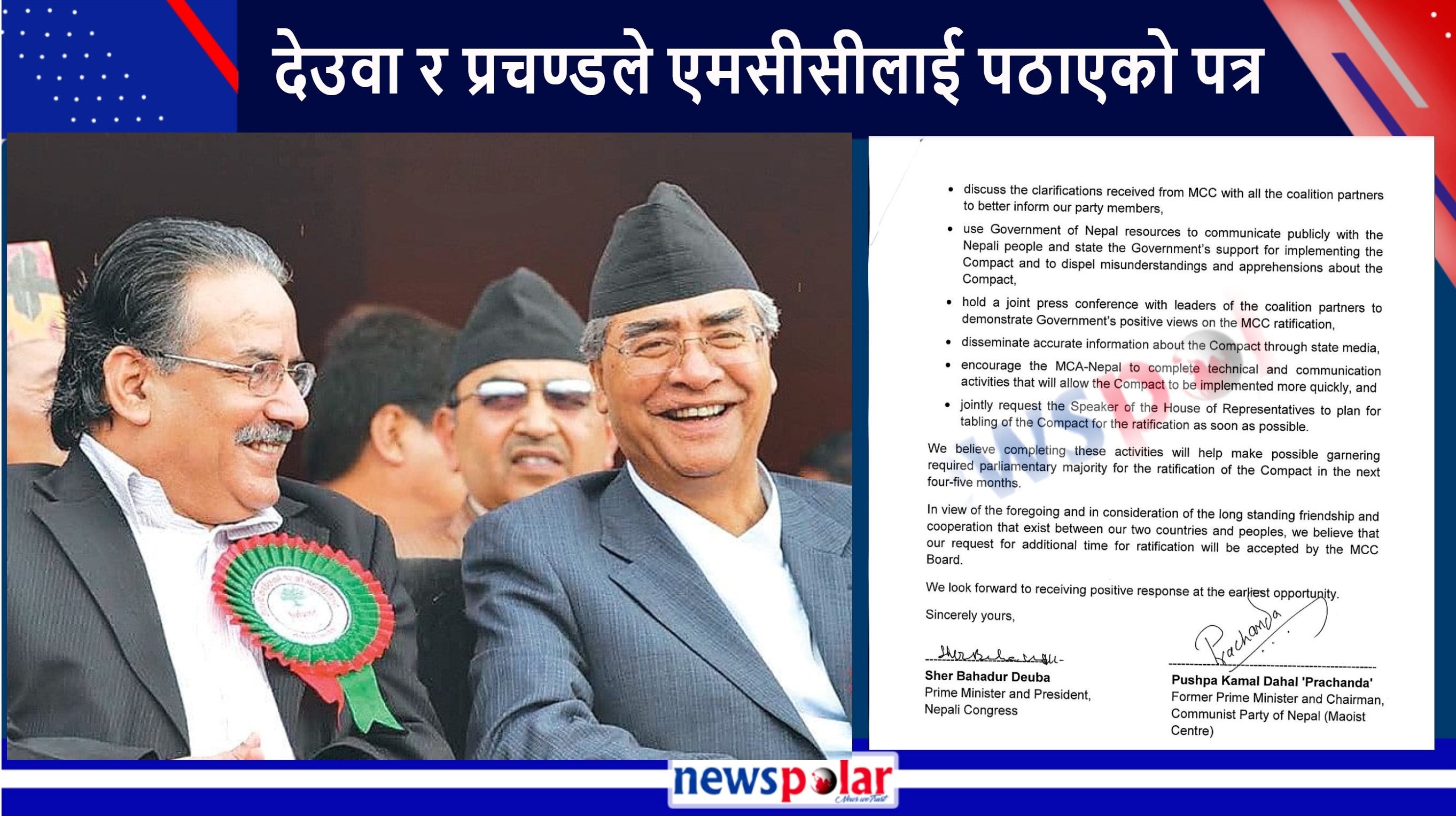 एमसीसी पास गर्नेबारे प्रधानमन्त्री शेरबहादुर देउवाले गत कात्तिक १८ गते यसो भनेका थिए- 'प्रचण्ड जी र मैले साईन गरेरै पठाको छु त । '