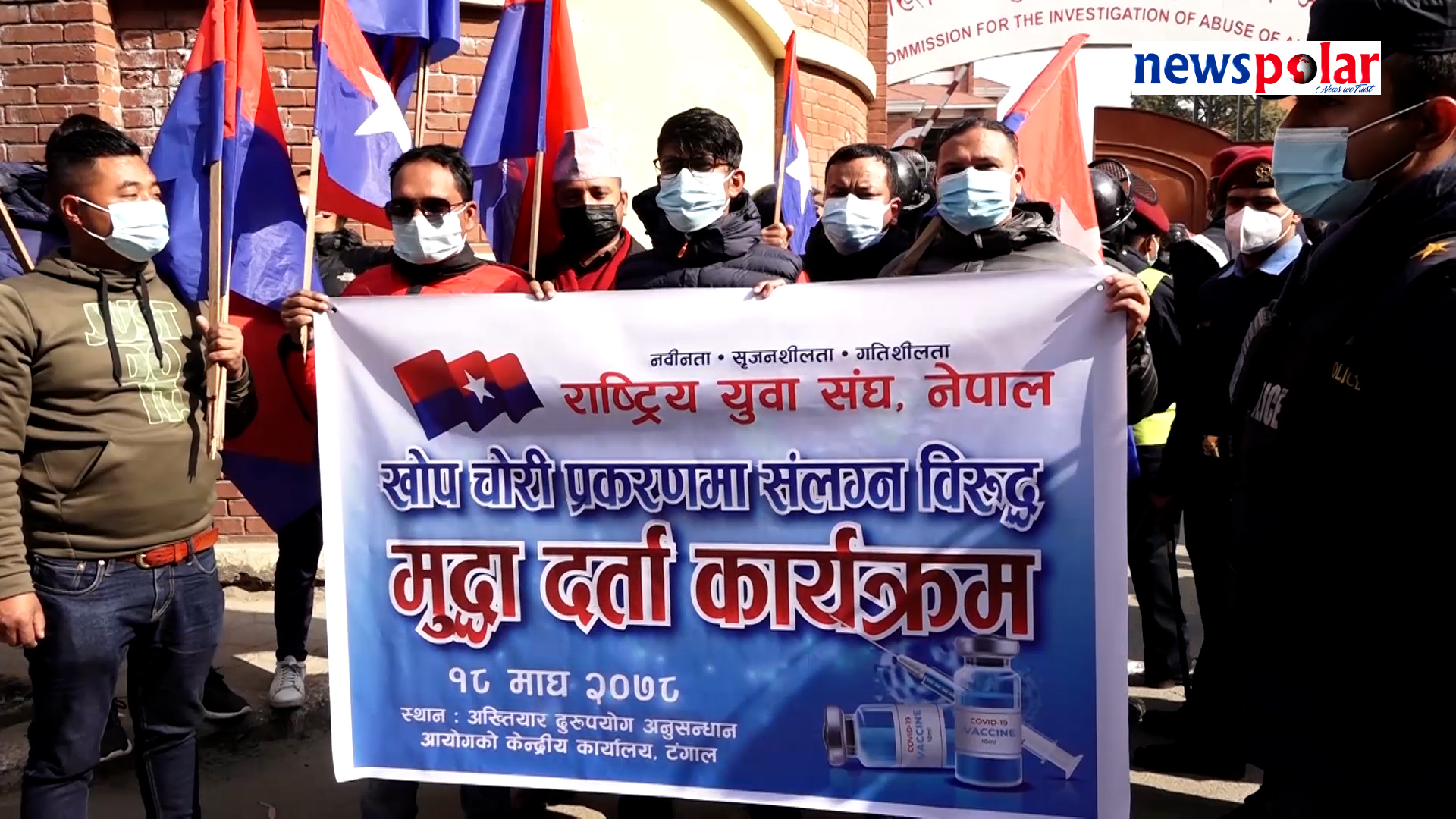 नेपाल सरकारका स्वास्थ्य तथा जनसङ्ख्यामन्त्री खतिवडाले जिम्मेवारी बहन गरेपछि कोभिड–१९ विरुद्धको २४ लाख डोज खोप हराएको र सो को मूल्य करिब २ अर्ब ५० करोड रुपैयाँ रहेकाले हिनामिनामा मन्त्रीको संलग्नता रहेको राष्ट्रिय युवा संघ, नेपालले आरोप लगाएको छ । मन्त्री खतिवडा र यस कार्यमा संलग्न व्यक्तिहरुउपर छानविन गरी भ्रष्टाचार निवारण ऐन, २०५९ को दफा ३, ८ र १७ तथा अन्य कानूनी प्रावधान बमोजिम कारबाही गर्न माग गरिएको संघका अध्यक्ष किरण पौडेलले बताउनुभयो । उहाँले जनताको सुरक्षाको ग्यारेन्टी लिएको सरकार र स्वास्थ्य मन्त्रालयभित्रैबाट खोप हराउनु लज्जास्पद र जनघाति कदम भएको बताउनुभयो ।