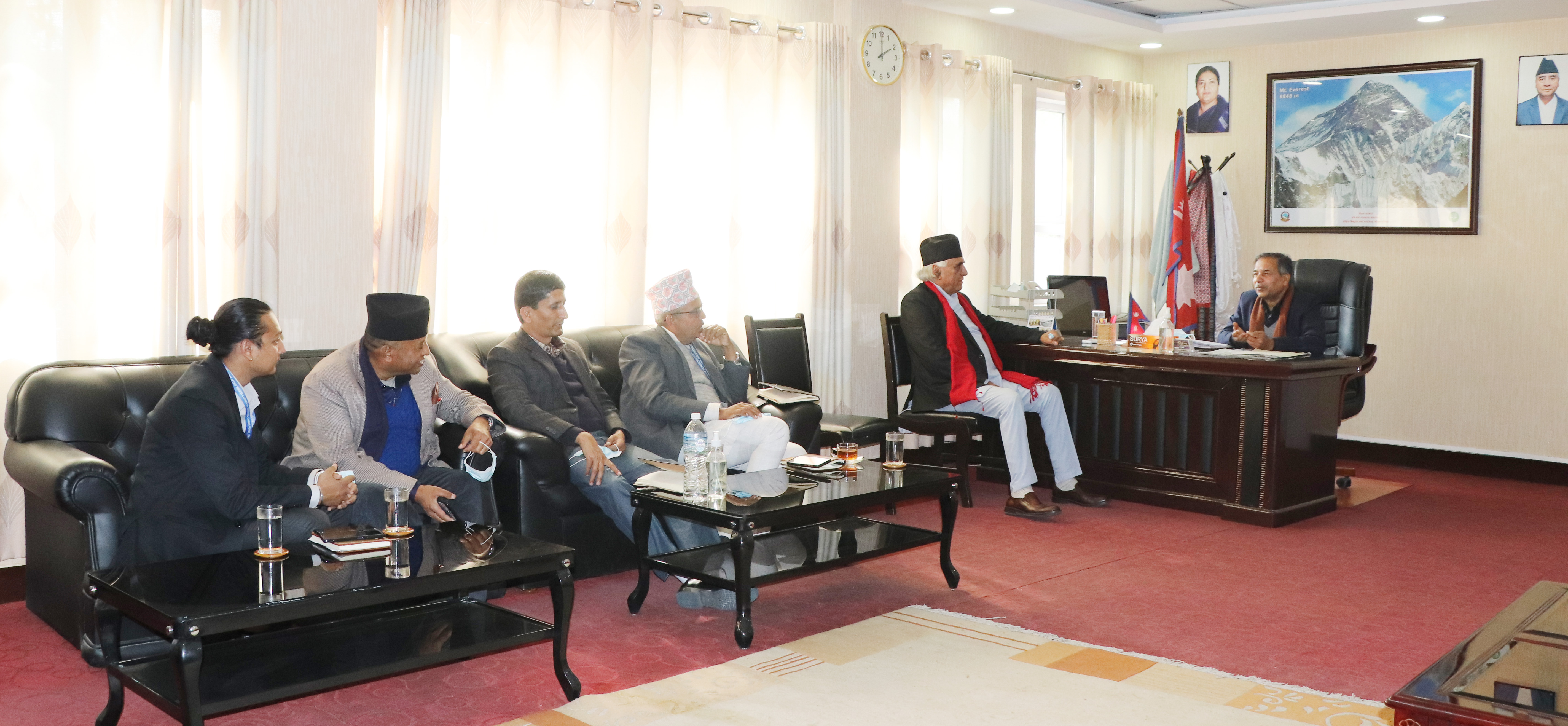 मुख्यमन्त्रीका साथमा राजनीतिक सल्लाहकार खड्गबहादुर कमाल, नीति तथा योजना आयोगका उपाध्यक्ष डा. रघुराज काफ्ले थिए ।