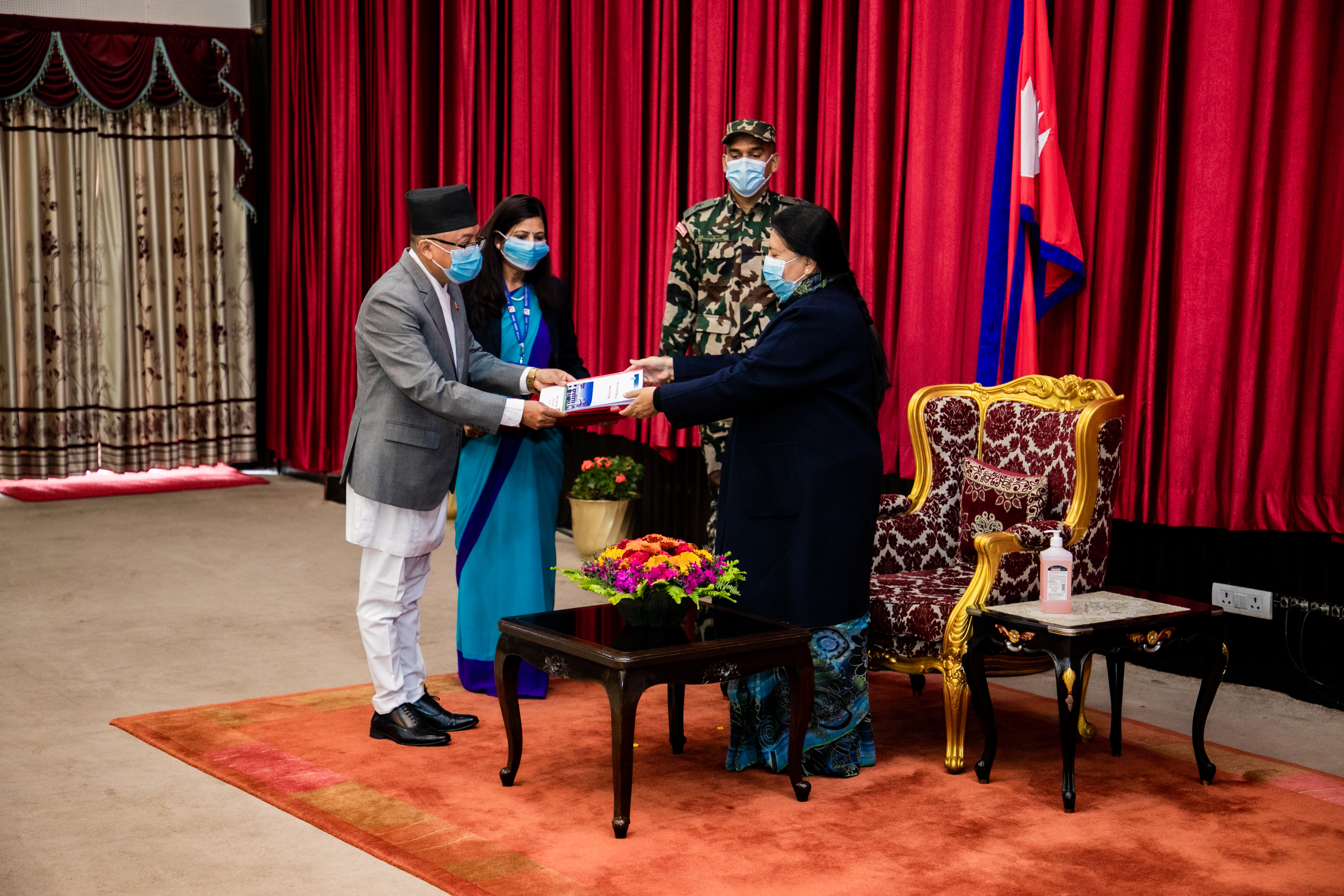 काठमाडौँ । राष्ट्रपति विद्यादेवी भण्डारीसमक्ष निर्वाचन आयोगका प्रमुख निर्वाचन आयुक्त दिनेशकुमार थपलियाले नेपालको संविधानको धारा २९४ को उपधारा (१) बमोजिम आयोगको आर्थिक वर्ष २०७७/०७८ को वार्षिक प्रतिवेदन पेश गर्नुभएको छ ।