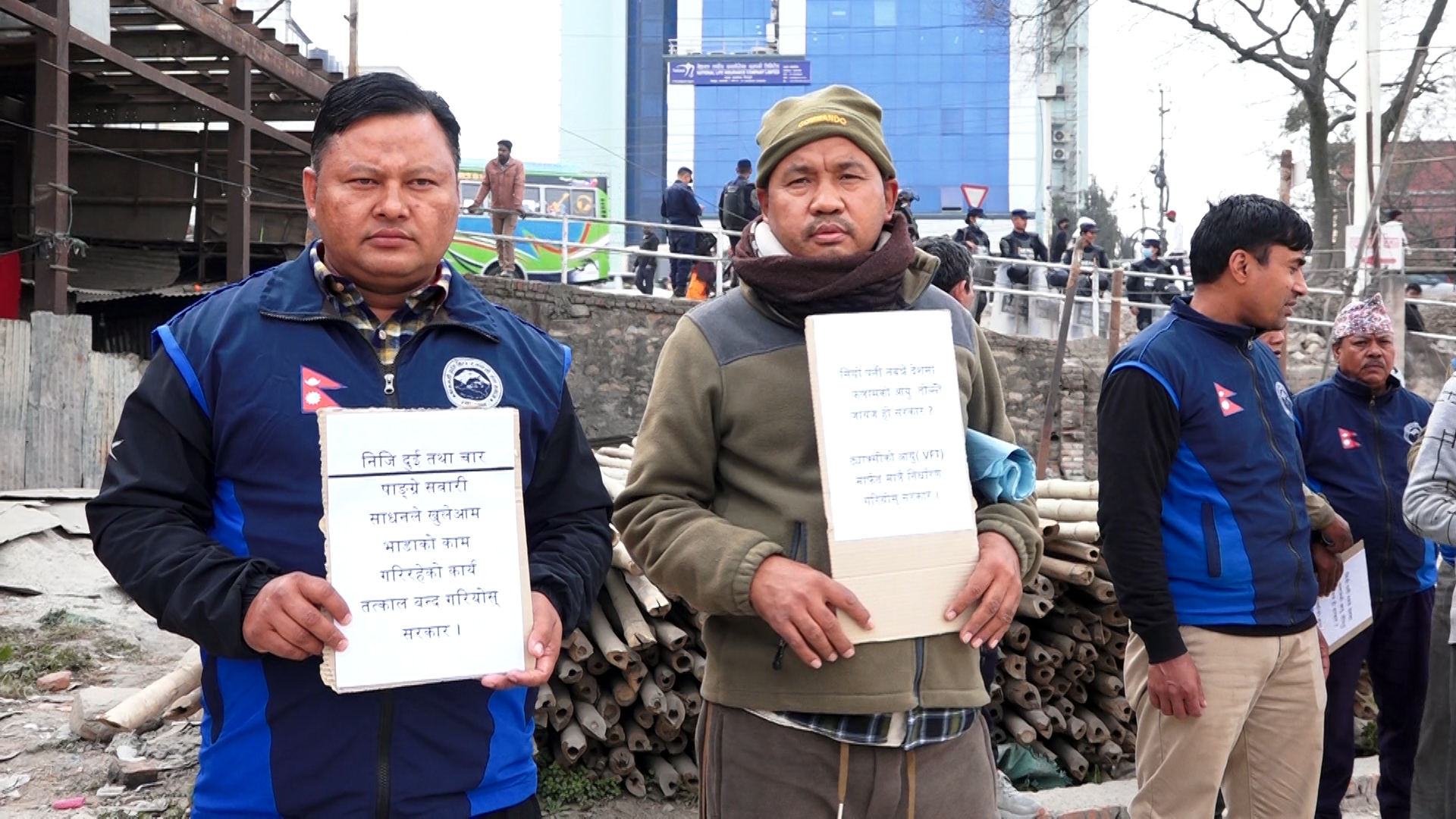 संघर्ष समितिका संयोजक थापाले भन्नुभयो, ‘ट्याक्सी व्यवसायीमाथि सरकारले जुन खालको निर्णय गर्यो । जो एकाधिकार सिन्डीकेटबाट आर्थिक चलखेल गरी जुन खालको निर्णय भयो । टाटा कम्पनीको गाडीमा निजीले किन्दा त्यो गाडीको दाम ३० लाख र हामी ट्याक्सी स्वरोजगार मजदुरले जो २० वर्षदेखि एउटा ट्याक्सी चलाएर डोर टू डोर सेवा दिने मजदुरमाथि घोर अन्याय गरेर ७ लाख बढी लिएर ३७ लाख तिर्नुपर्ने भएको हुँदा आज ३५ सय टयाक्सीहरुको भविष्य अन्योलमा बनाएर यी मजदुरहरुलाई बिस्थापित गराउने जुन खालका षड्यन्त्र गर्यो । त्यसैको बिरुद्धमा चाहीँ हामीले विभिन्न निकायमा गएर हाम्रा माग पत्रहरु सबै ठाउँमा प्रदेश सरकारदेखि संघीय सरकारसम्म राख्यौं । तर उहाँहरुले नटेरेको अवस्थामा हामीलाई १५ देखि २० लाखसम्मको गाडी देऊ, हामीलाई नागरिकलाई सेवा दिन सजिलो हुन्छ भनेर हामीले विभिन्न माग राख्दै माग पत्र दिँदा पनि उहाँहरुले नटेरेपछि त्यही कम्पनीको एउटै गाडी हाल्नुपर्छ तपाईहरुले भनेर हाम्रो माग उहाँहरुले सुन्नुभएको छैन ।’