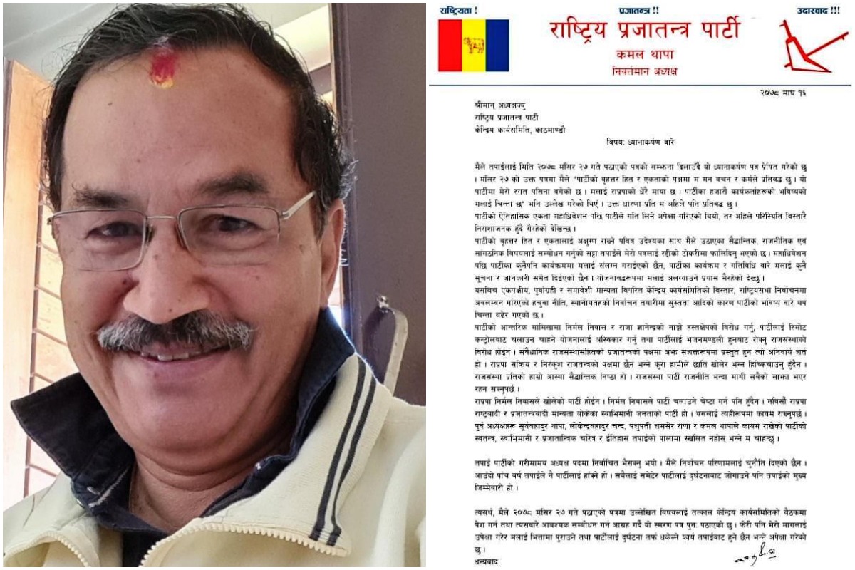 लिङ्देनलाई कमल थापाको पत्र– मलाई भित्तामा पुर्‍याउने र पार्टीलाई दुर्घटनातर्फ धकेल्ने काम नहोस्