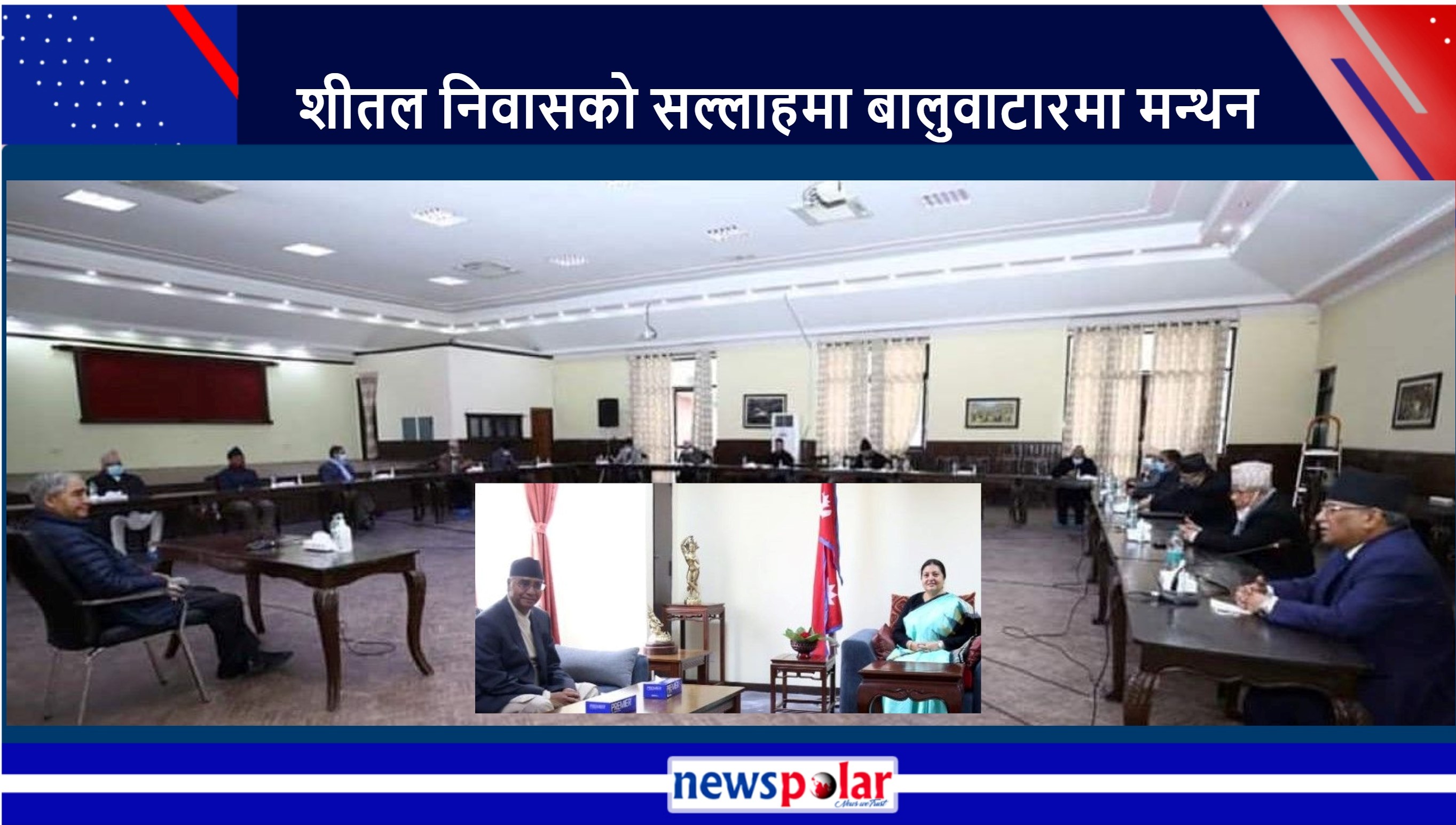काठमाडौँ । बिहीबार अपराह्न प्रधानमन्त्री शेरबहादुर देउवा राष्ट्रपति विद्यादेवी भण्डारीलाई भेट्न शीतल निवास पुग्नुभयो । समाचार आयो– राष्ट्रपति–प्रधानमन्त्री भेटवार्ता । भेट नियमित र समसामयिक विषयवस्तुहरु जस्तो कोभिडको अवस्था आदिमा केन्द्रित । राष्ट्रपति निवासको समाचार स्रोतले पनि यसै भन्यो– भेट औपचारिक तथा समसामयिक विषयमा कुराकानी ।