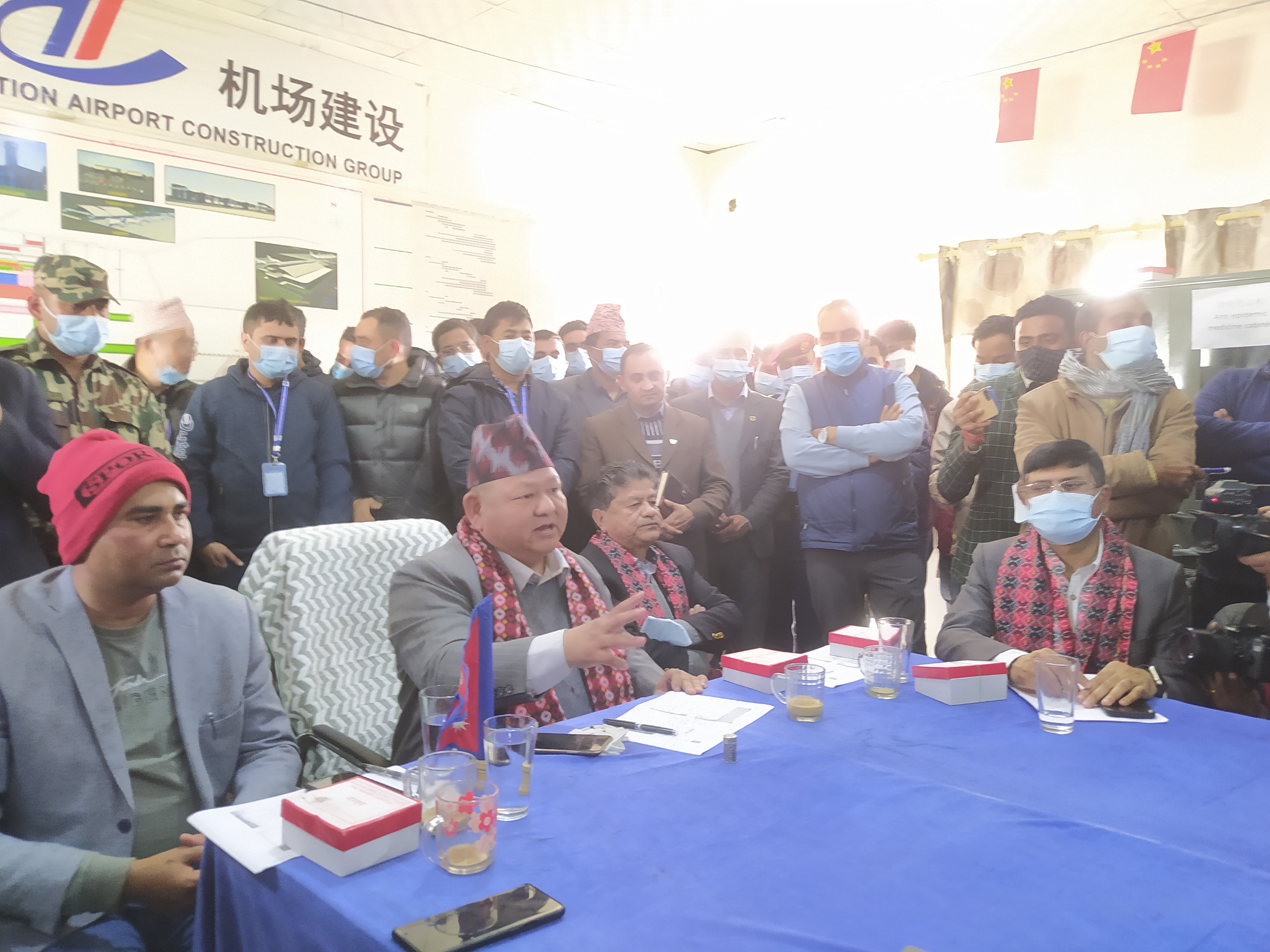 छेऊमै रहेका कांग्रेस नेता भरत कुमार शाहलाई देखाउँदै मन्त्री आलेले भन्नुभयो, “सार्वजनिक लेखा समितिका सभापति यहीँ हुनुहुन्छ, माननीय प्रमोद यादव यहीँ हुनुहुन्छ । यो निर्वाचन क्षेत्रका माननीय घनश्याम भुसालले दिनदिनै सोध्नुहुन्छ, प्रधानमन्त्री, मन्त्रीज्यूहरू सबैको चासो छ, यो विमानस्थलमा छिटो उडान हुनुपर्छ भन्नेछ । हामी त्यहीअनुसार तयारी गरिरहेका छौँ ।”