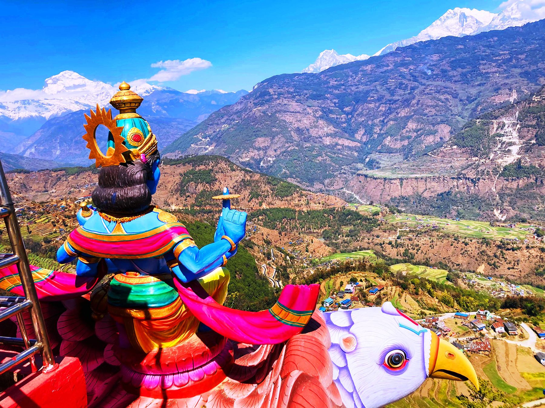 पञ्चकोटमा रहेको गरुड शिला र पृष्ठभूमिका हिमशृङ्खला