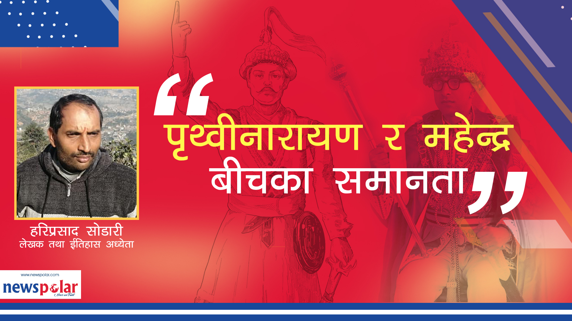 नेपालको आधुनिक इतिहासलाई राम्रोसँग हेर्ने हो भने पृथ्वीनारायण र महेन्द्रमात्र राजाका रुपमा जन्मिएर नेपालको गरिमा बढाए । इतिहासका पाना पल्टाउँदा, पृथ्वीनारायण र राजा महेन्द्रका धेरै पक्षमा समानता देखिन्छन् । राष्ट्रको अस्मिता जोगाउन सेना र प्रहरीको ठूलाे भूमिका हुन्छ । पृथ्वीनारायणले जसरी सेनालाई व्यवस्थित र संगठित बनाएका थिए, त्यसरी नै राजा महेन्द्रले प्रहरीलाई स्थायी बसोबास र राशनपानीको प्रबन्ध गराए । कीर्तिपुरको पहिलो युद्ध र एकपटक नुवाकोट जाँदै गर्दा पृथ्वीनारायण शाहलाई झन्डै मारिएको थियो । राजा महेन्द्र पनि जनकपुर भ्रमणमा हुँदा झन्डै बमको शिकार बन्नुपरेको थियो ।