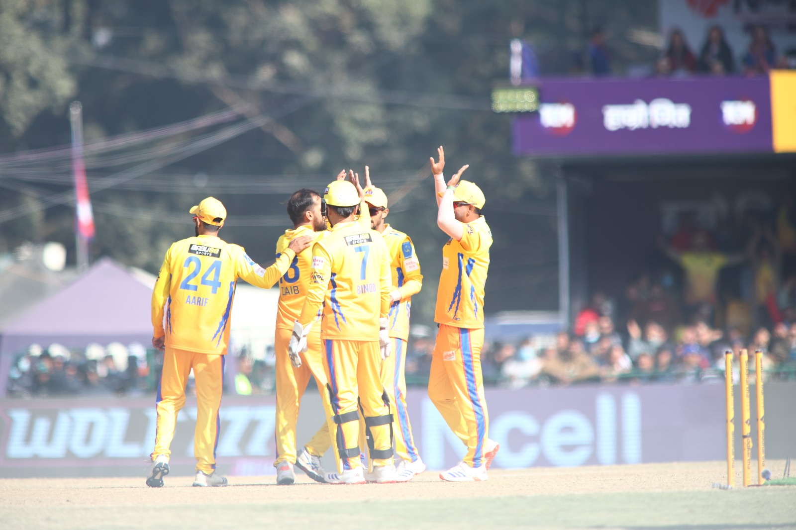 बलिङतर्फ पोखराका कुशल भुर्तेलले दुई तथा रेमोन रिफर, सागर ढकाल र माइकल लिस्कले एक–एक विकेट लिए ।