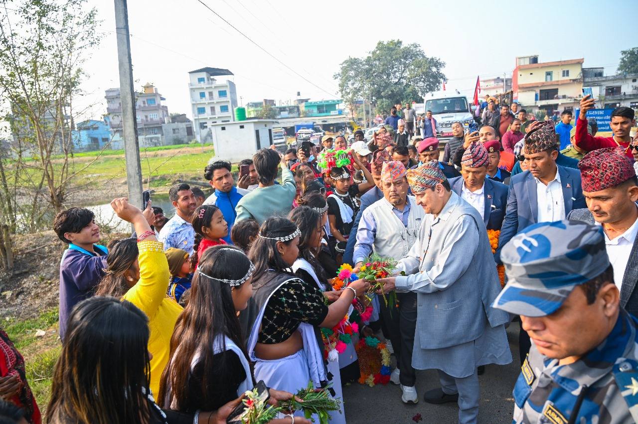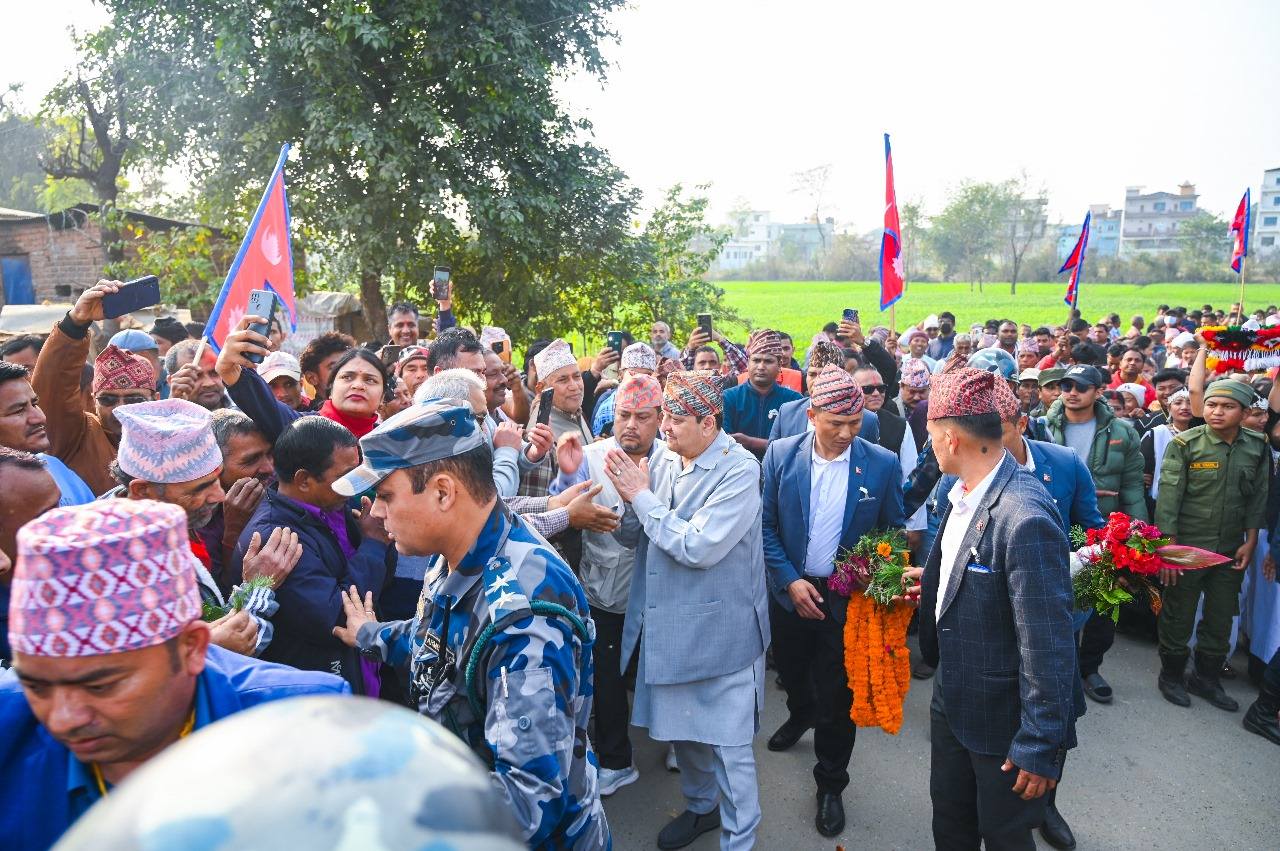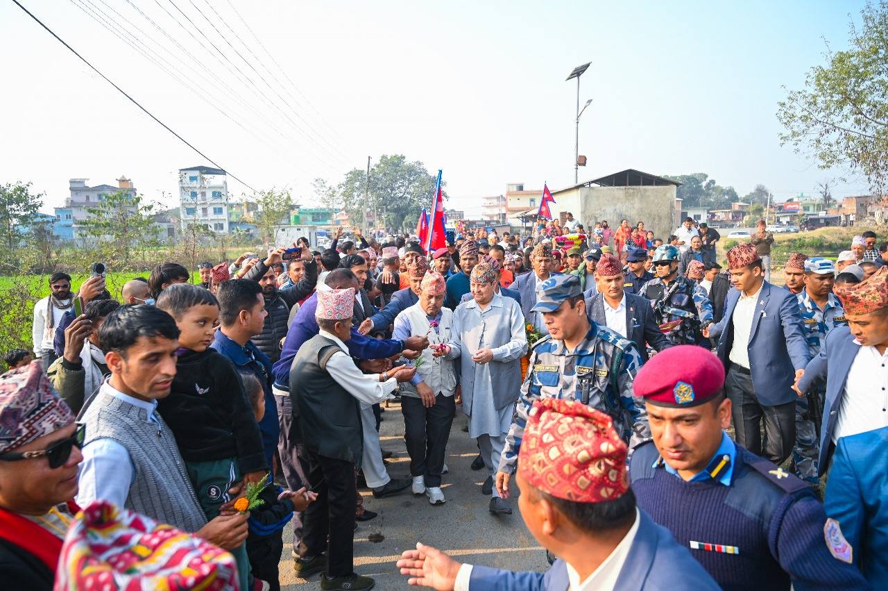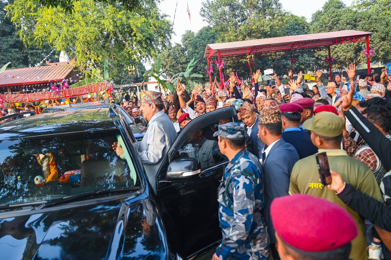 पूर्व राजा आउने जानकारी पाएपछि स्थानीयहरूले फूल माला सहित उनको स्वागत गरे।
