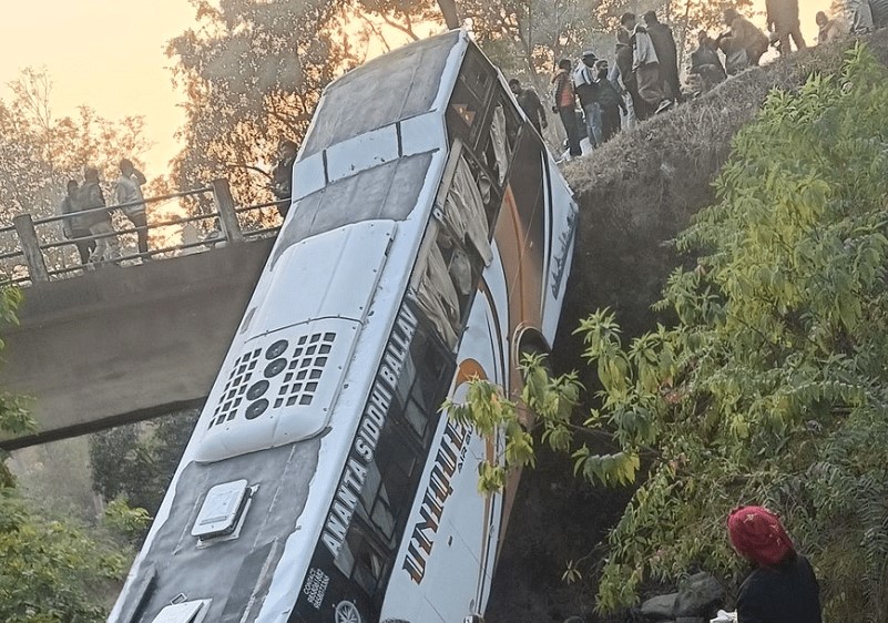 भारतको उत्तर प्रदेशको प्रयागराजमा जारी कुम्भ मेलामा जाँदै गरेको उक्त बसमा ४१ जना सवार थिए । बस पुलबाट तल खसेको थियो ।