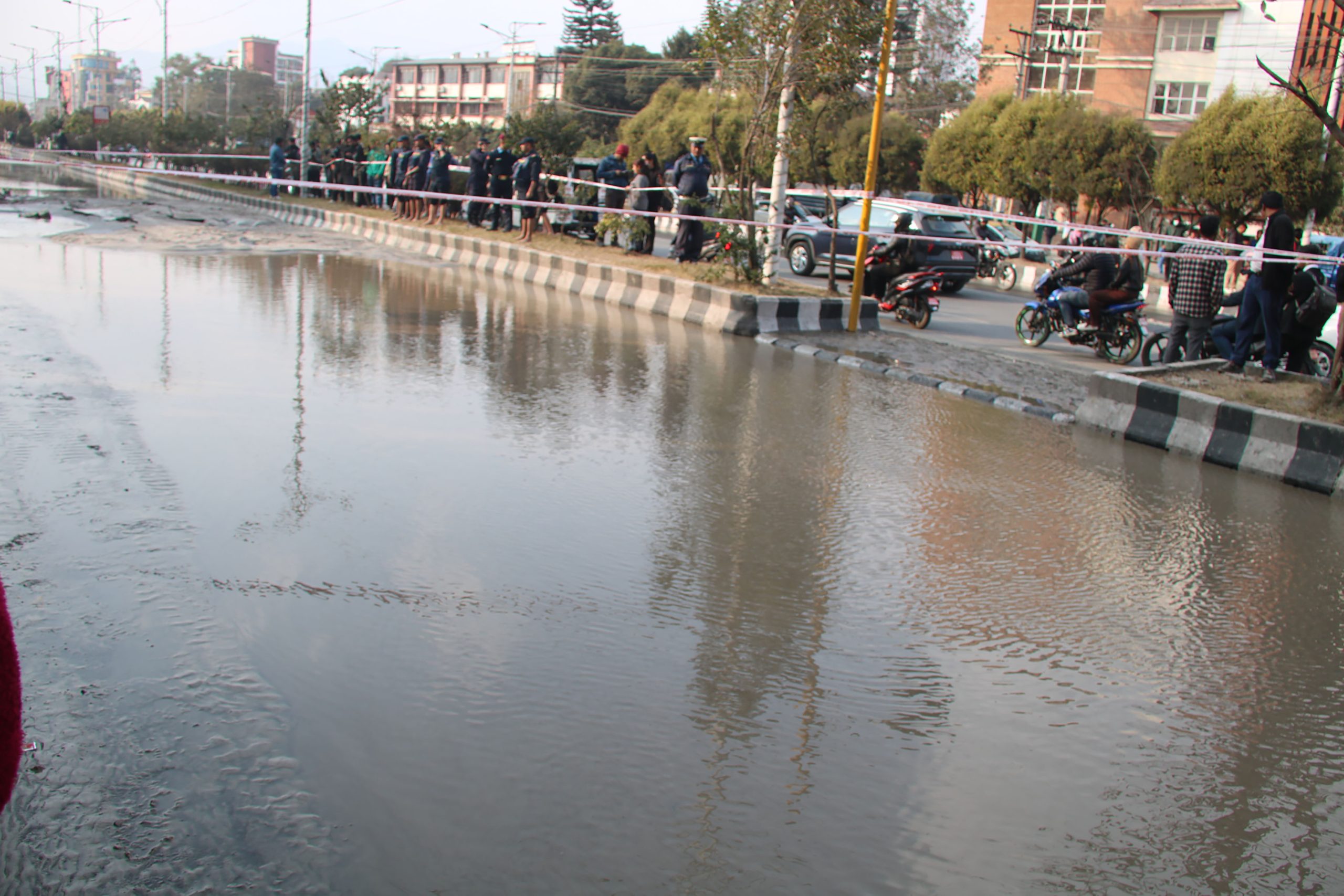 आज दिउँसो विद्युत् प्राधिकरणले विद्युत्का तारहरू अण्डरग्राउण्ड गर्नका लागि ‘होेरिजोन्टल ड्रिलिङ’ गर्ने क्रममा बबरमहलस्थित खानेपानीको थोक वितरण प्रणालीको पाइप फुटेपछि सो क्षेत्र जलमग्न भएको हो ।