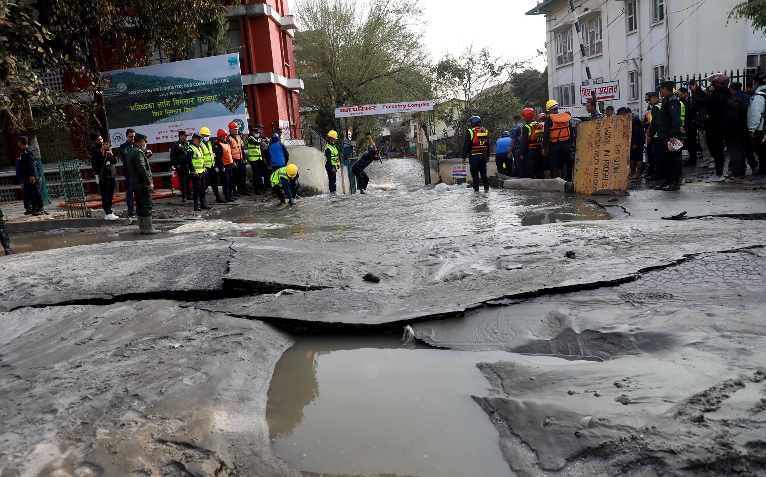 काठमाडौँ उपत्यका खानेपानी आयोजना कार्यान्वयन निर्देशनालय (पिआइडी)का प्रमुख टीकाबहादुर चौधरीले विद्युत्का तारहरू अण्डरग्राउण्ड गर्नका लागि ‘होेरिजोन्टल ड्रिलिङ’ गर्ने क्रममा खानेपानीको थोक वितरण प्रणालीको पाइप फुटेको राससलाई जानकारी दिनुभयो । उहाँले भन्नुभयो, “पाइप फुटेपछि पानी वितरण गर्ने भल्ब बन्द गरी पाइप सफा गर्नेकाम (वास आउट) भइरहेको छ । हालसम्म पानी बग्न भने रोकिएको छैन ।”