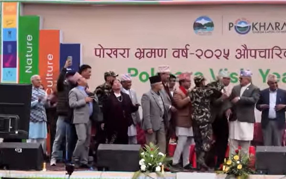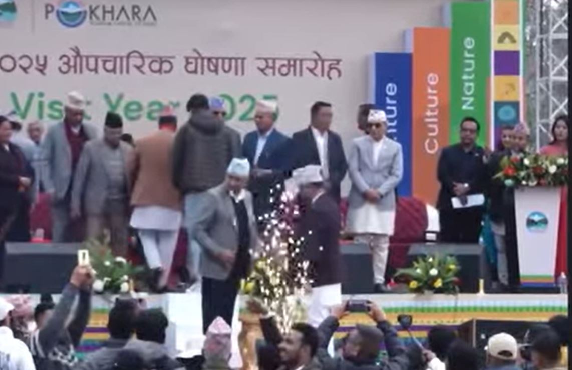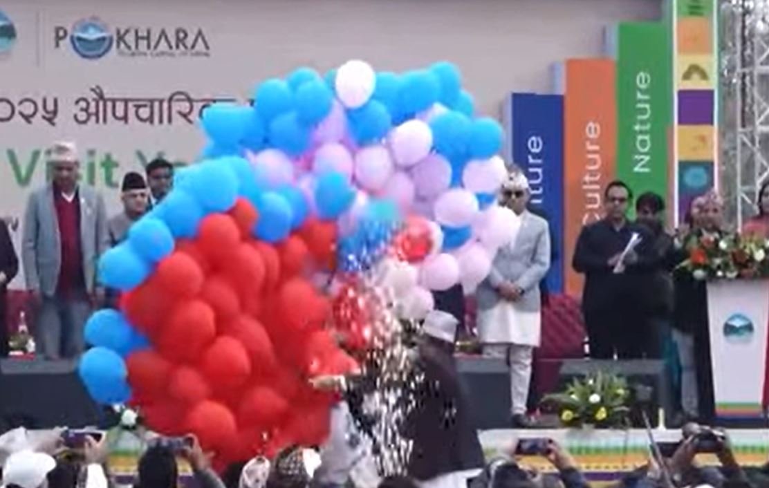 पोखरा भ्रमण वर्ष २०२५ को औपचारिक उद्घाटन गर्ने क्रममा स्विच थिचेर पानसमा बत्ति बालेपछि बेलुन उडाउन खोज्दा आगोमा परेर बेलुन पड्किँदा अर्थमन्त्री पौडेल र मेयर आर्चाय घाइते हुनु भएको हो ।