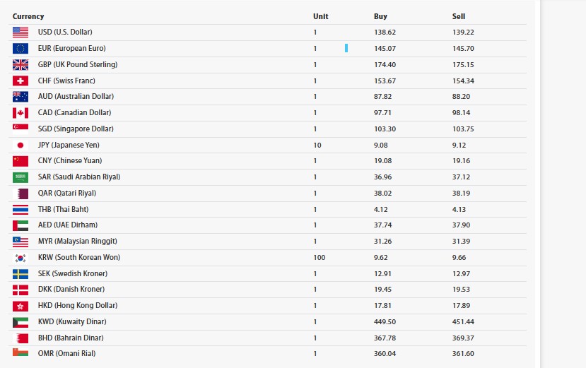 युरोपियन युरो एकको खरिदर १४५ रूपैयाँ ०७ पैसा र बिक्रीदर १४५ रूपैयाँ ७० पैसा निर्धारण गरिएको छ । यस्तै, युके पाउन्ड स्ट्रलिङ एकको खरिददर १७४ रूपैयाँ ४० पैसा र बिक्रीदर १७५ रूपैयाँ १५ पैसा कायम गरिएको छ । स्वीस फ्र्याङ्क एकको खरिददर १५३ रूपैयाँ ६७ पैसा र बिक्रीदर १५४ रूपैयाँ ३४ पैसा तय गरिएको छ ।