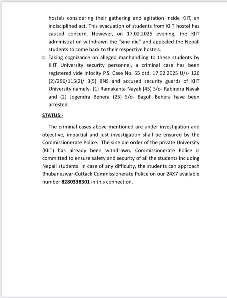 केआईआईटी प्रशासनले नेपाली विद्यार्थीलाई कलिङ्गा इन्स्टिच्युटबाट निकाल्दा सुरक्षागार्डहरूले कुटपिट गरेको भिडिओ सार्वजनिक भएको थियो ।