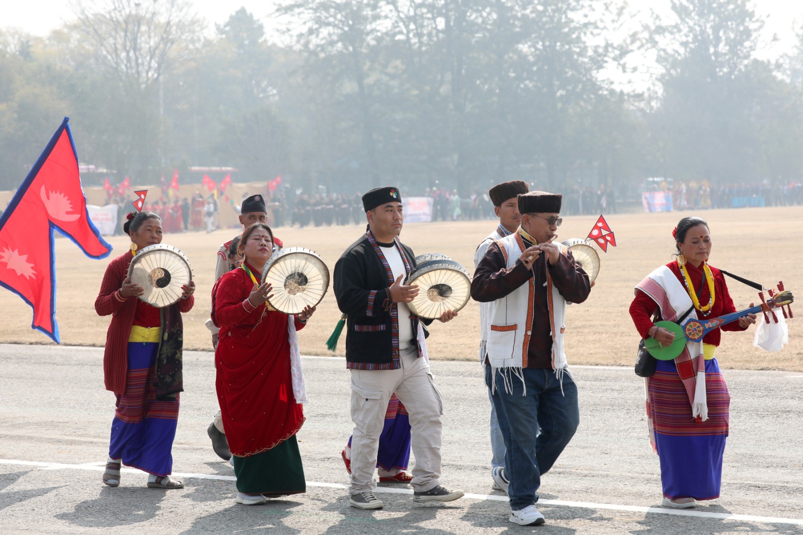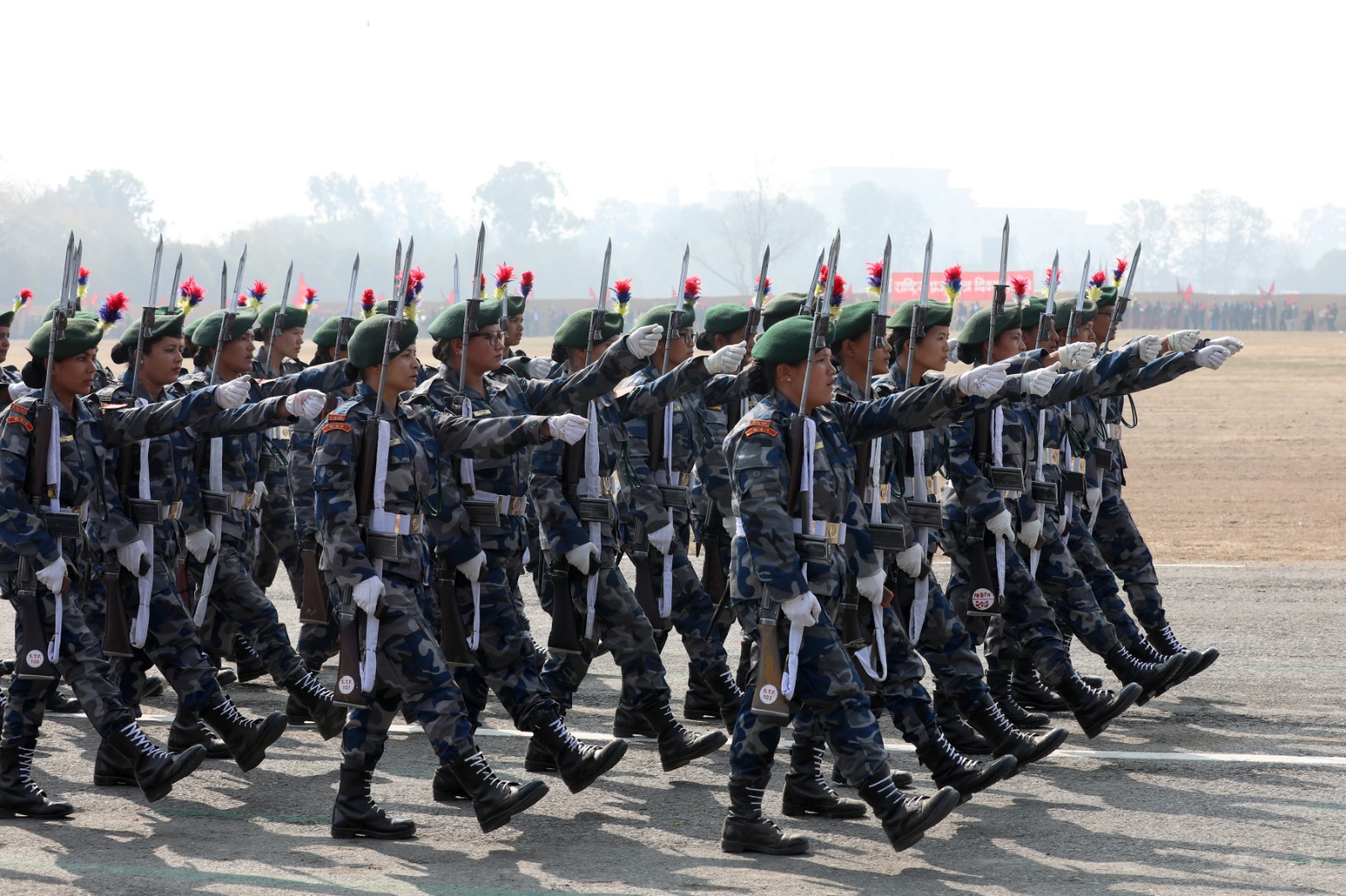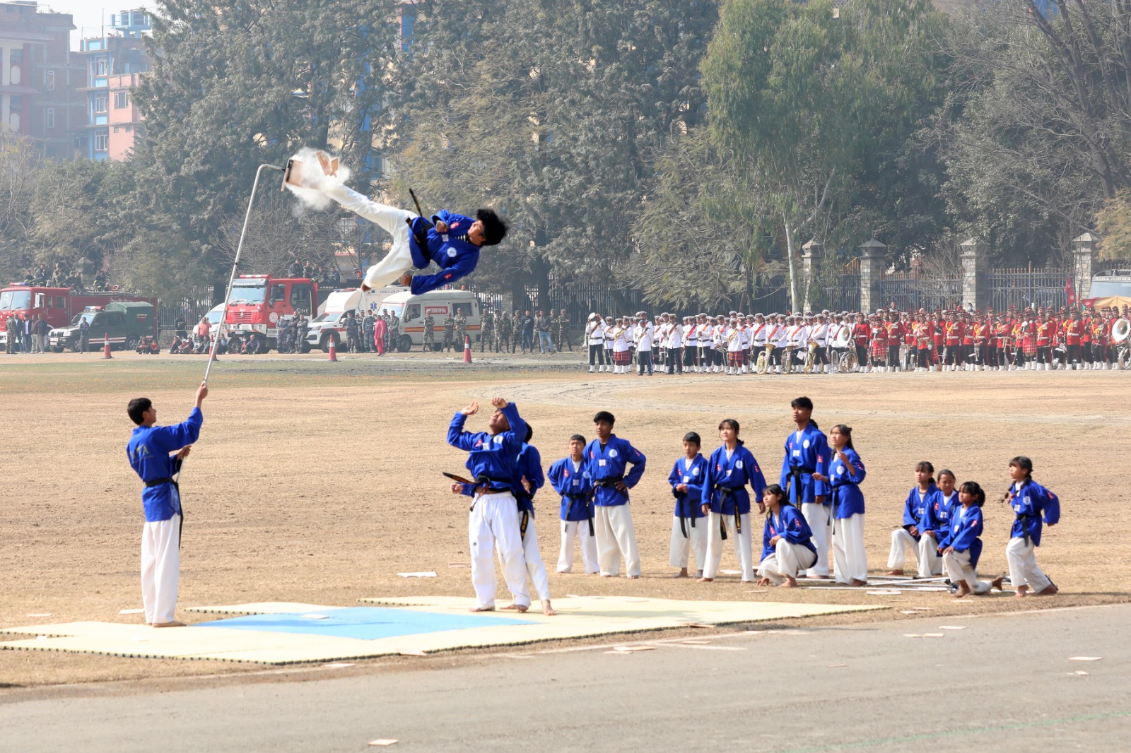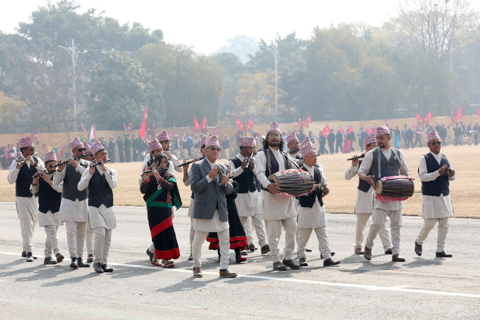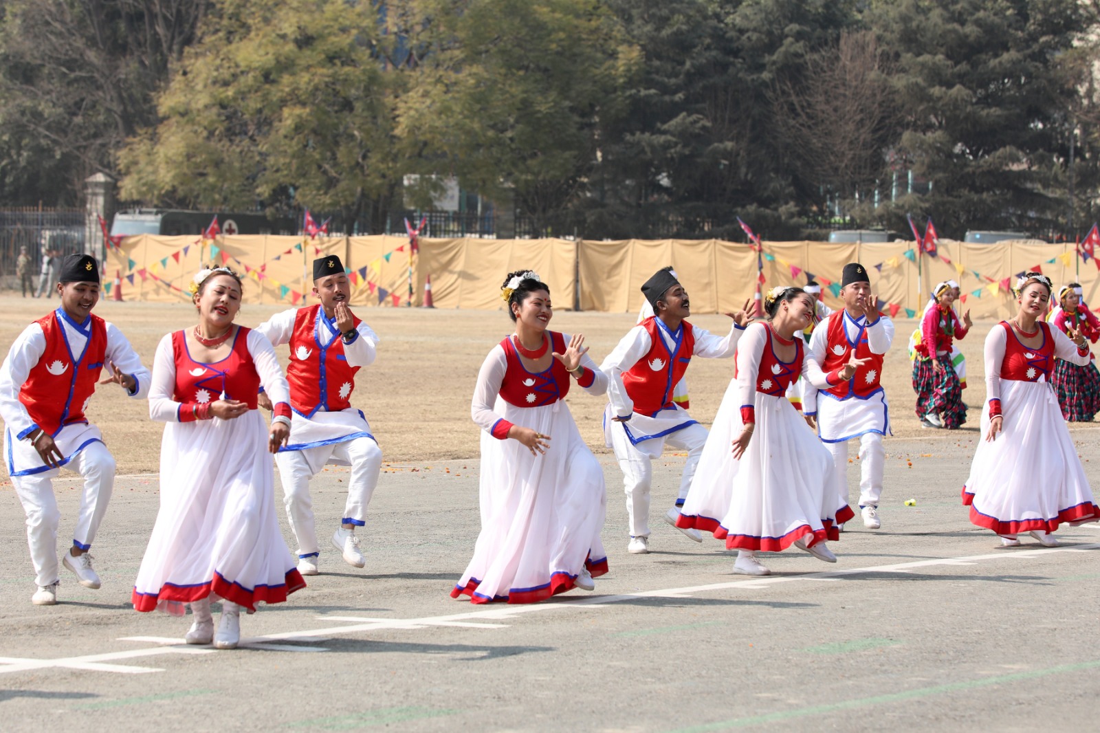 सोही अवसरमा नेपाली सेनाको हेलिकोप्टरबाट राष्ट्रिय प्रजातन्त्र दिवस, २०८१ अङ्कित ब्यानर प्रदर्शन गरी पुष्पवृष्टि एवं रङ्गीचङ्गी बेलुनहरू उडाइएको थियो । समारोहमा नेपाली सेना, नेपाल प्रहरी, सशस्त्र प्रहरी बल नेपाल र नेपाल स्काउटद्वारा ‘मार्चपास’ र ‘ब्याण्ड’ प्रस्तुत गरिएको थियो ।