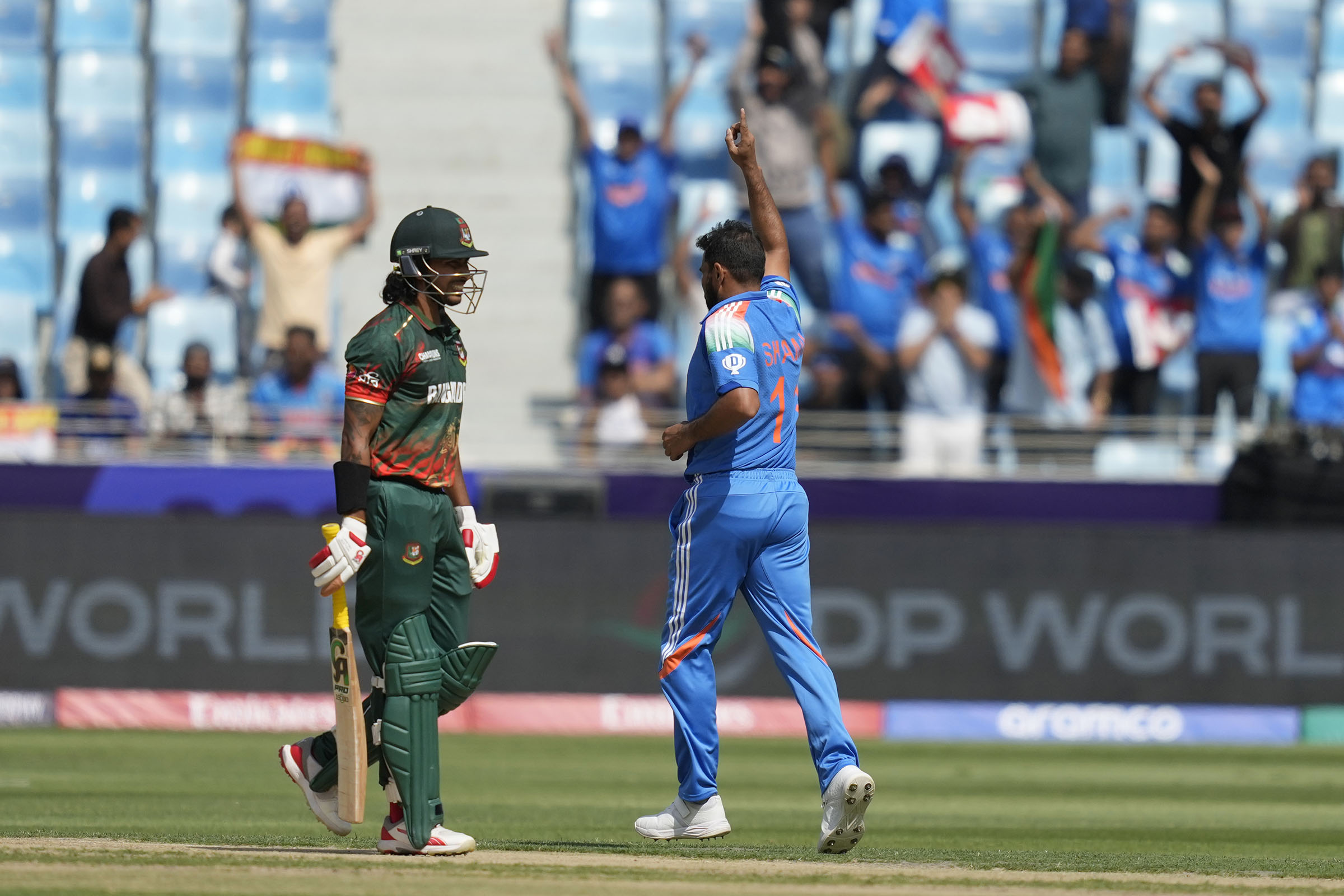 यस्तै, मोहम्मद शामीले मेहदी हसन मिराज (५ रन) र सौम्या सरकार (०) लाई पनि आउट गरे । हर्षित रानाले कप्तान नजमुल हुसेन शान्तोलाई प्याभिलियन पठाए ।