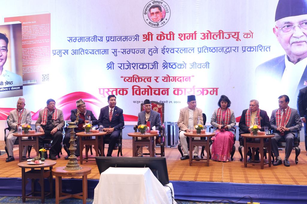 ईश्वरलाल प्रतिष्ठानद्वारा प्रकाशित व्यावसायी तथा समाजसेवी राजेशकाजी श्रेष्ठको जीवनीमा आधारित ‘व्यक्तित्व योगदान’ पुस्तकको आज लोकार्पण गर्दै प्रधानमन्त्री ओलीले हिजो सँगै रहेर मस्यौदा गरेका केही मान्छेहरुले अहिले अभिव्यक्ति स्वतन्त्रता हनन् हुन लाग्यो भनेर सामाजिक सञ्जाल विधेयकविरुद्ध चर्का कुरा गरेर हल्ला गरेको टिप्पणी गर्नुभयो ।