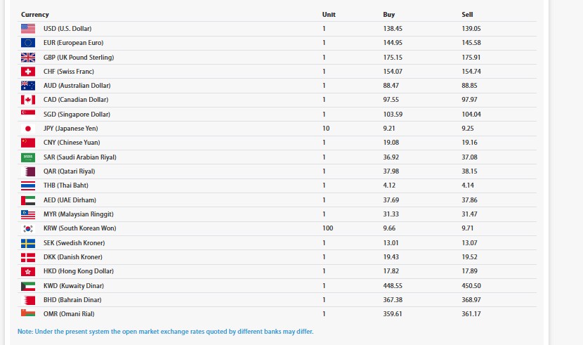 काठमाडौँ। नेपाल राष्ट्र बैंकले आजका लागि विदेशी मुद्राको विनिमय दर निर्धारण गरेको छ । राष्ट्र बैंकका अनुसार अमेरिकी डलर एकको खरिददर एक सय ३८ रुपैयाँ ४५ पैसा र बिक्रीदर एक सय ३९ रुपैयाँ ०५ पैसा कायम भएको छ ।