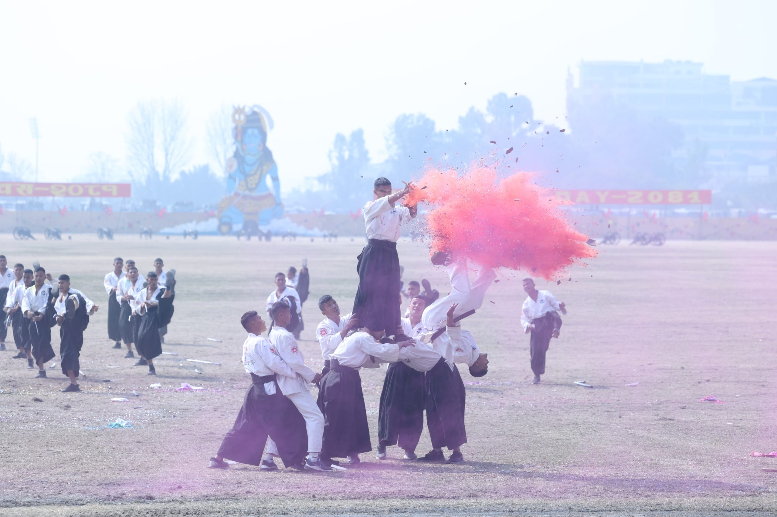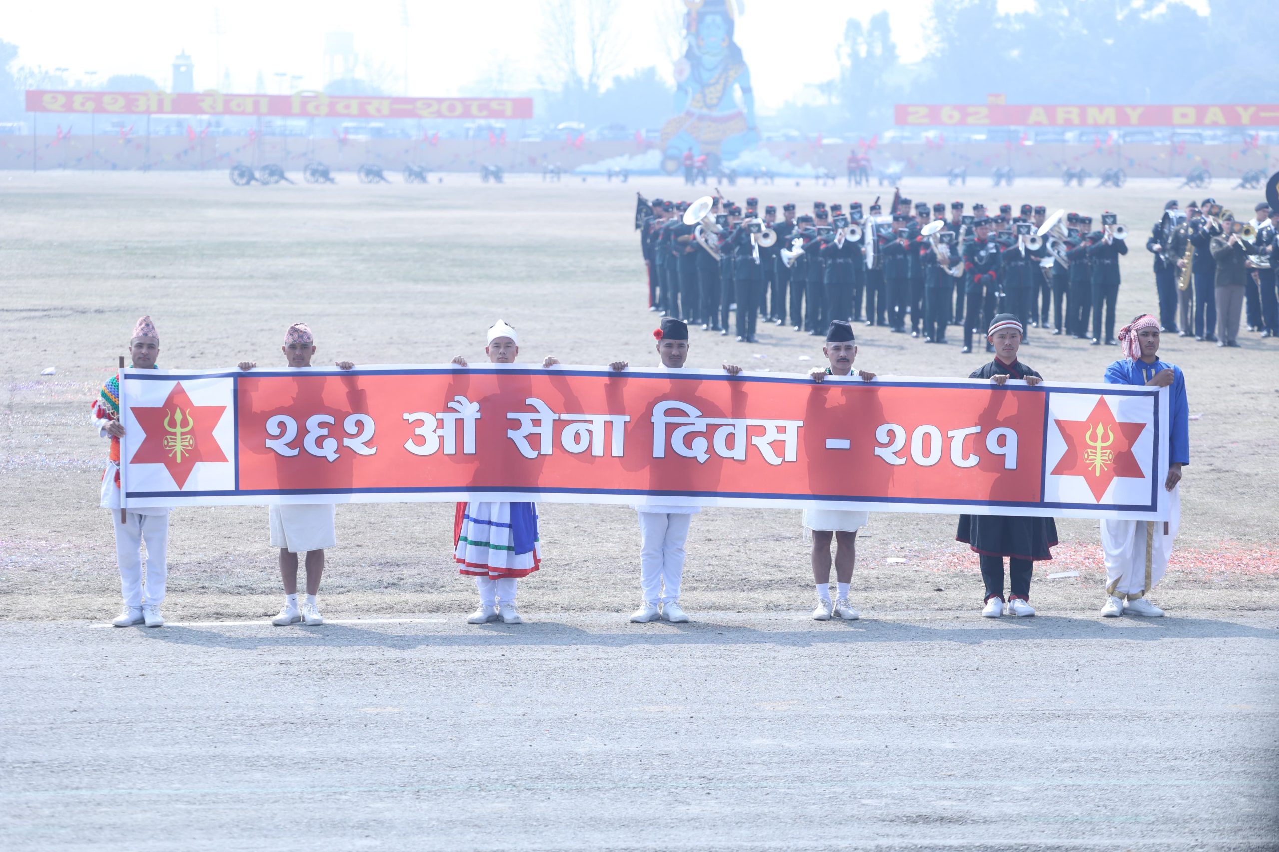 सो अवसरमा नेपाली सेनाको हेलिकप्टरले पुष्पवृष्टि गर्नाका साथै ‘सेना दिवस–२०८१’ लेखिएको ब्यानर प्रदर्शन गरेको थियो । समारोहमा सेनाले राइफल र तोपबाट महाशिवरात्रि बढाइँ गरेको थियो । बढाइँ कवाजअन्तर्गत राइफलद्वारा पाटा–पाटा लहरे र एकट्ठा प्रस्तुत गरेको छ ।