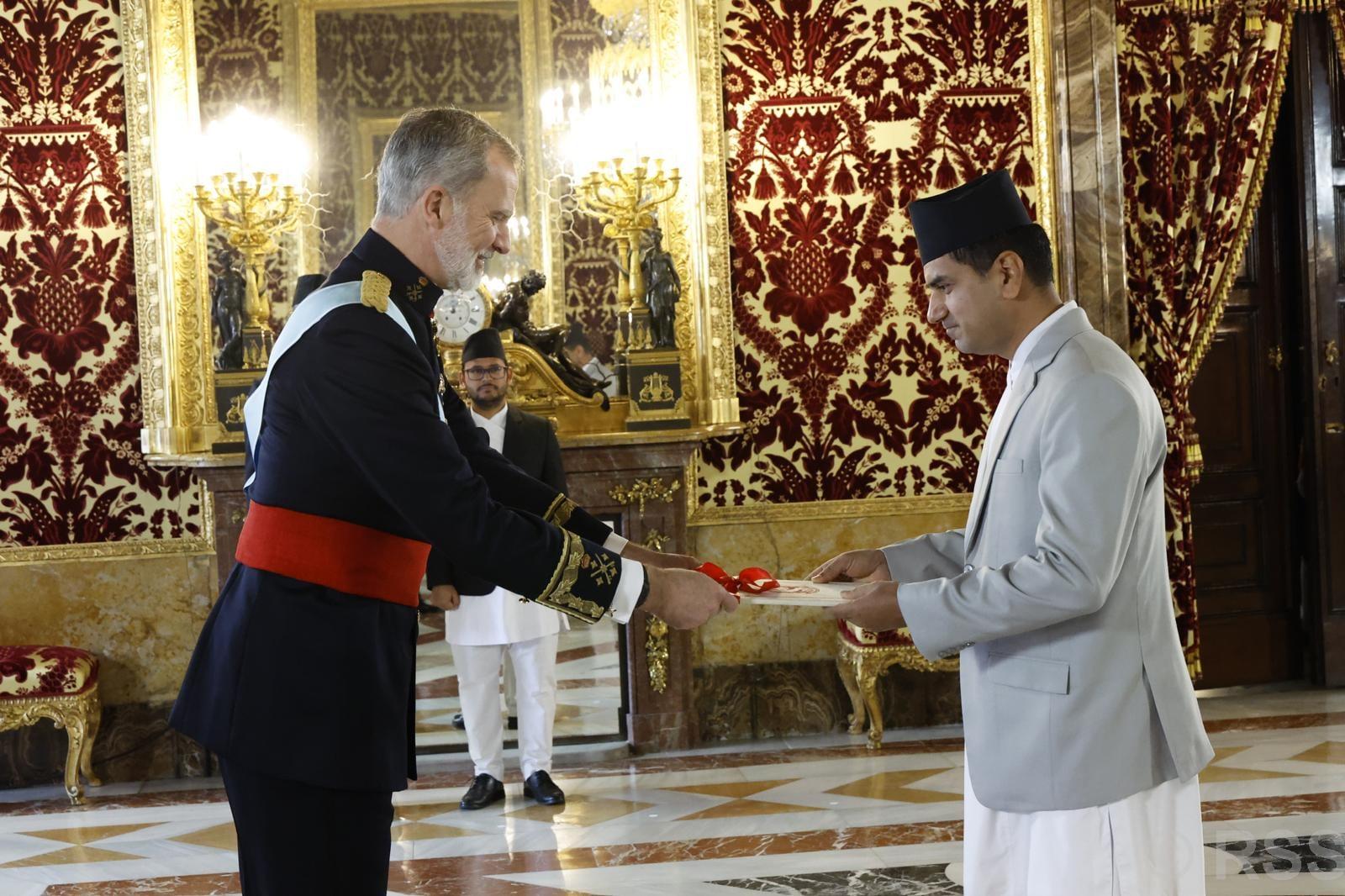 राजदूत नेपालद्वारा स्पेनका राजासमक्ष ओहदाको प्रमाणपत्र पेस
