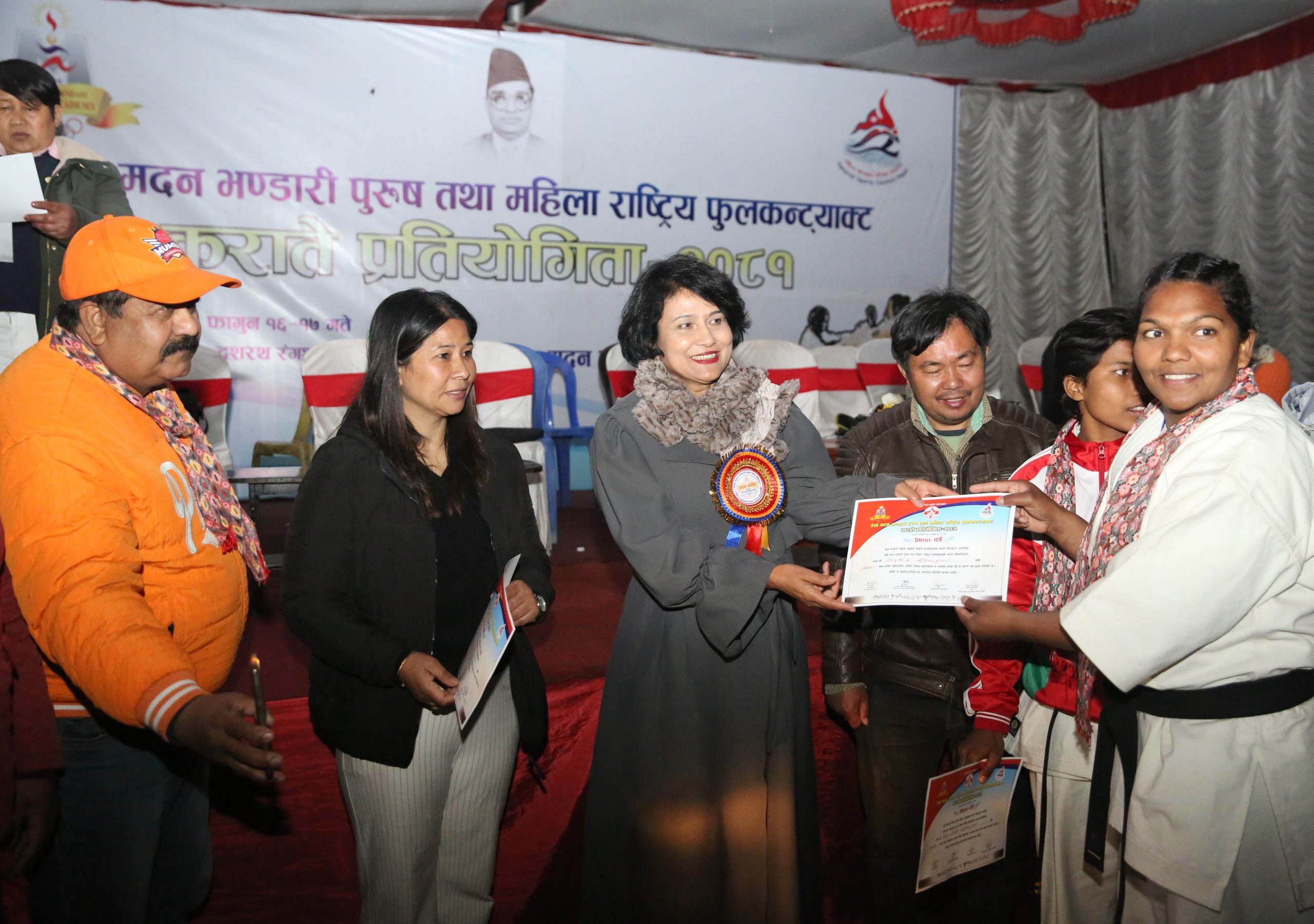 पुरुष÷महिला दुवैमा शीर्ष चार स्थान हात पार्नेले क्रमशः ५० हजार, २५ हजार, १५ हजार र १० हजार नगद पुरस्कार हात पारे । मदन भण्डारी स्पोर्ट्स एकेडेमीको आयोजनामा भएको प्रतियोगिताको पुरुष ६५ केजीमा सनी सिंहले स्वर्ण, मेघबहादुर राईले रजत, सागर तामाङले कांस्य र जयराज स्याङतान चौथो भए ।