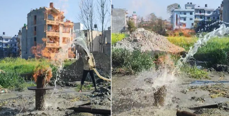 बोरिङको पाइप गाड्ने क्रममा बिहान करिब ८ः३० बाट बल्न सुरु भएको आगोको ज्वाला ११ः४० बजेतिर निभाइएको हो ।