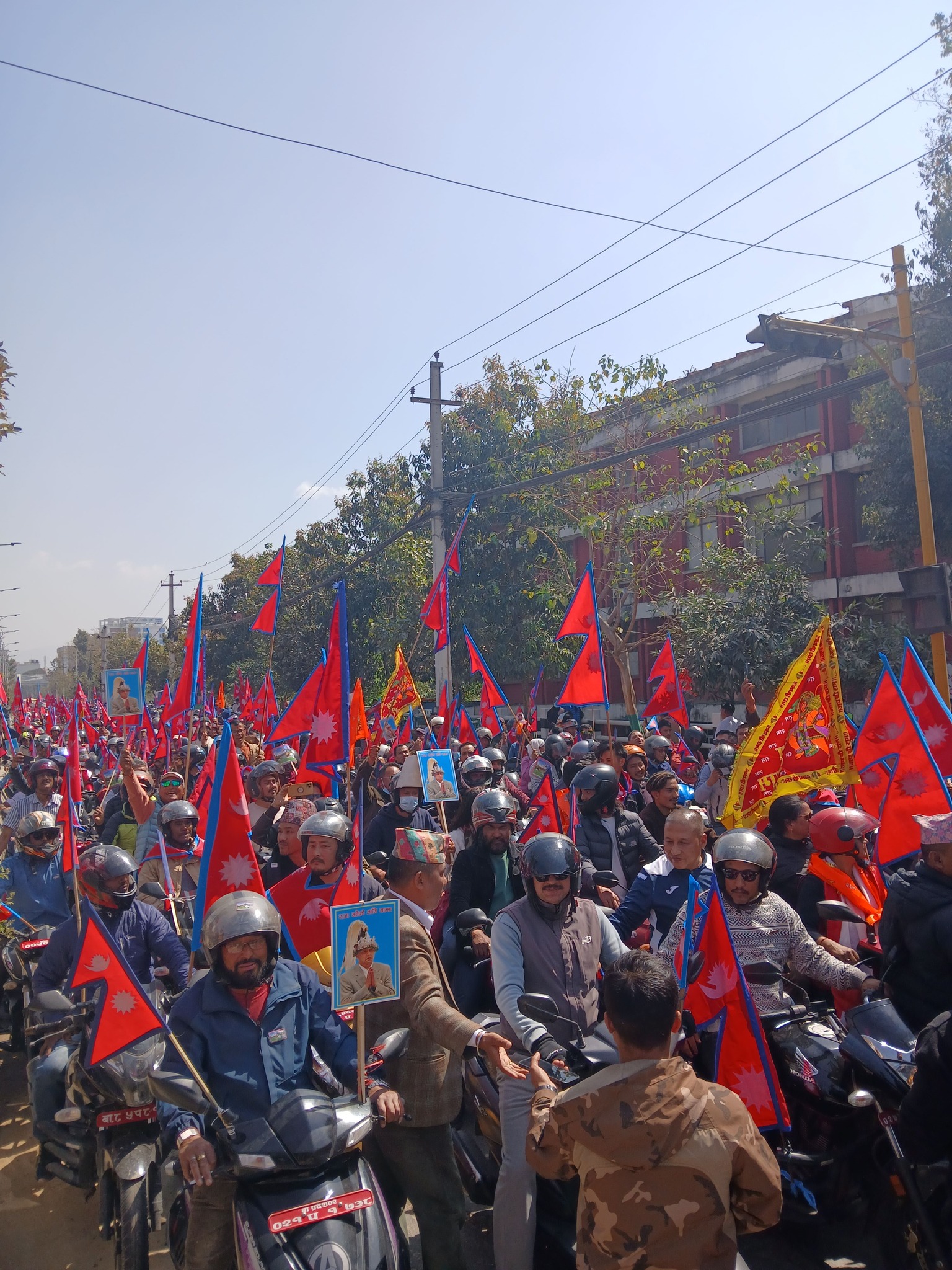 काठमाडौं । राजसंस्था पुनर्स्थापना , प्रदेश खारेजीलगायतका माग राख्दै राष्ट्रिय प्रजातन्त्र पार्टीले आज काठमाडौंमा मोटरसाइकल र्‍याली निकालेको छ ।
