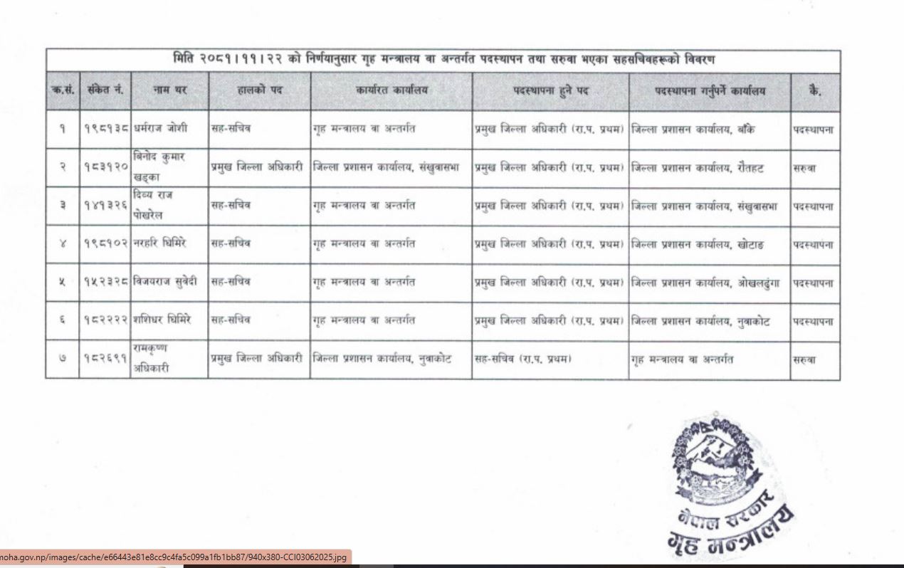 गृहका ७ सहसचिवको सरुवा, को कहाँ पुगे ? (सूचीसहित)