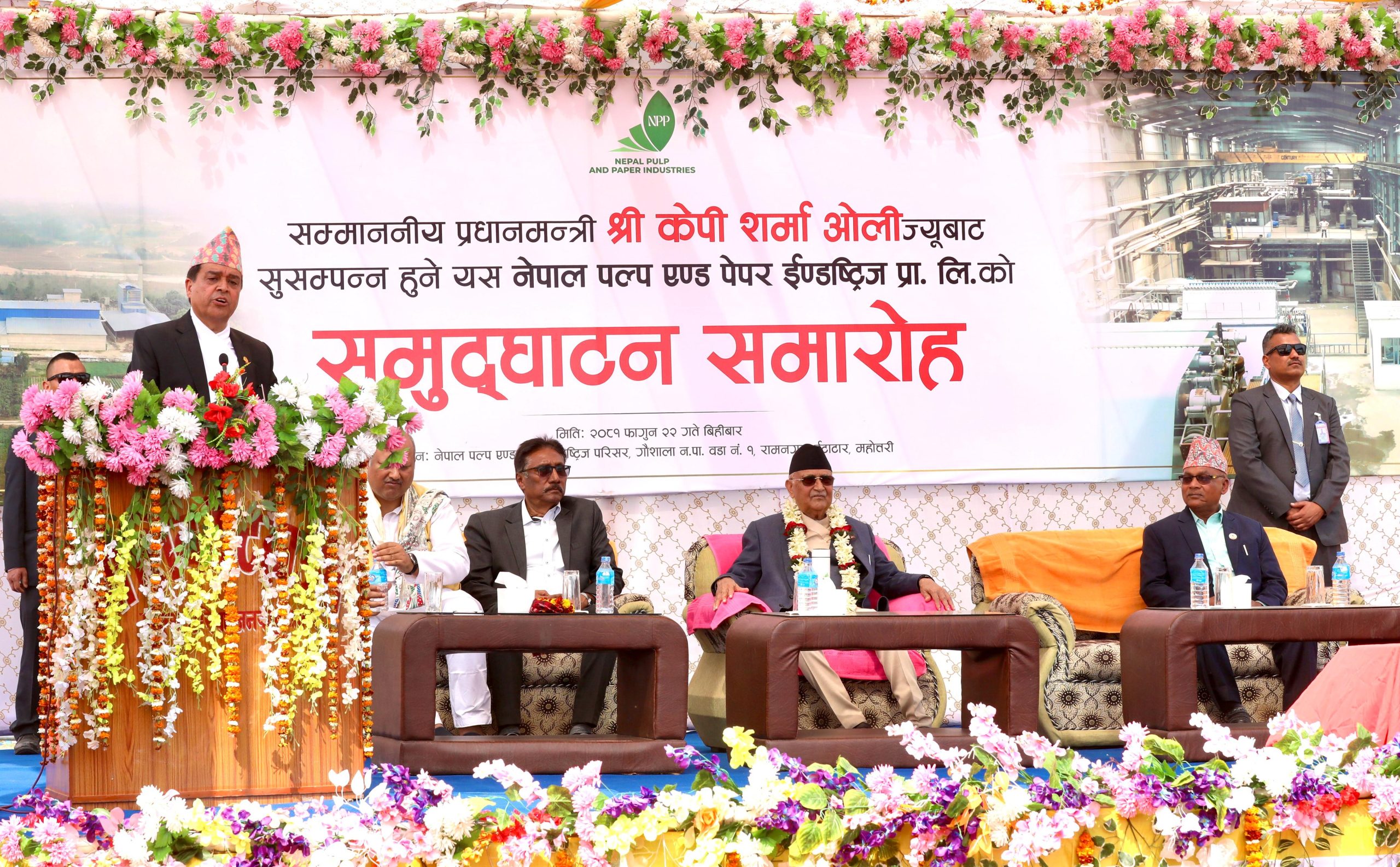 आज हामी सबैका लागि गर्वको क्षण हो किनकि हामी नेपालमा उत्पादन, आयात प्रतिस्थापन र उपभोगको अपार अवसरलाई उपयोग गर्ने यो अत्याधुनिक पल्प तथा पेपर उद्योगको शुभारम्भ गर्दैछौँ ।