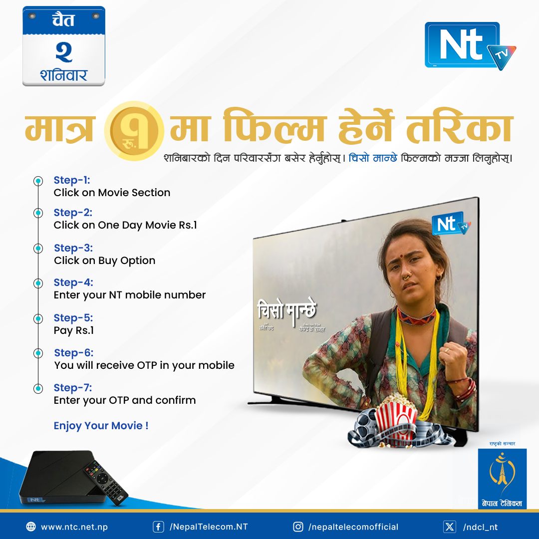 यो चलचित्र हेर्नका लागि प्रयोगकर्ताले टेलिकमको एनटीटीभीको Movie Section मा जानुपर्छ र त्यसपछि “One Day Movie Rs. 1” विकल्पमा क्लिक गर्नु पर्नेछ । त्यसपछि, Buy Option मा क्लिक गरी आफ्नो NT मोबाइल नम्बर प्रविष्टि गर्नुपर्नेछ । यसको पछिल्लो चरणमा, १ रुपैयाँको भुक्तानी मोबाइल ब्यालेन्सबाट कटौती हुनेछ ।