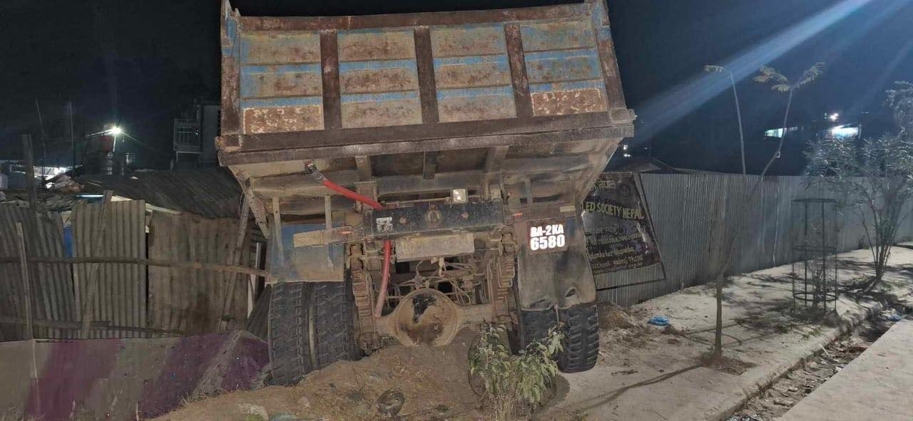 बिहान करिब ३ः४० सो बजेको समयमा काठमाडौँको शङ्खरापुर नगरपालिका–६ साँखु सलम्बुटारस्थित साँखु–ब्रह्मखेल सडकखण्डमा बा२क ६५८० नम्बरको टिपर अनियन्त्रित भई युवराज थापाले सञ्चालन गरेको द्वन्द्वपीडित तथा अपाङ्ग समाज संस्थाले बनाएको जस्ताको टहरामा ठक्कर दिन पुगेको थियो ।
