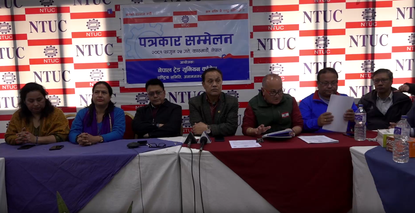 नेपाल ट्रेड युनियन काँग्रेसको फागुन २१ र २२ गते भएको राष्ट्रिय परिषद बैठकले गरेको विभिन्न निर्णय जानकारी दिन आईतवार काठमाडौंमा आयोजित पत्रकार सम्मेलनमा नेपाल ट्रेड युनियन काँग्रेस (एनटीयुसी) का अध्यक्ष योगेन्द्र कुँवरले उहाँले यस्तो बताउनुभएको हो । उहाँले श्रम क्षेत्रका अत्यावश्यक सेवा तथा विशेष ऐनद्वारा सञ्चालित क्षेत्रमा श्रम ऐन लागू नहुने सर्वोच्च अदालतको निर्णय अदालतको सम्मान गर्दै अस्वीकार गरिएको बताउनु भयो । उहाँले सर्वोच्चले गरेको फैसला सच्याएर संशोधन गर्नुपर्ने बताउनुभयो । उहाँले सर्वोच्चको निर्णयमा नेपालको ट्रेड युनियन आन्दोलनलाई कमजोर बनाउने तथा श्रम अधिकार खोस्ने नियत रहेको दाबी गर्नुभयो ।