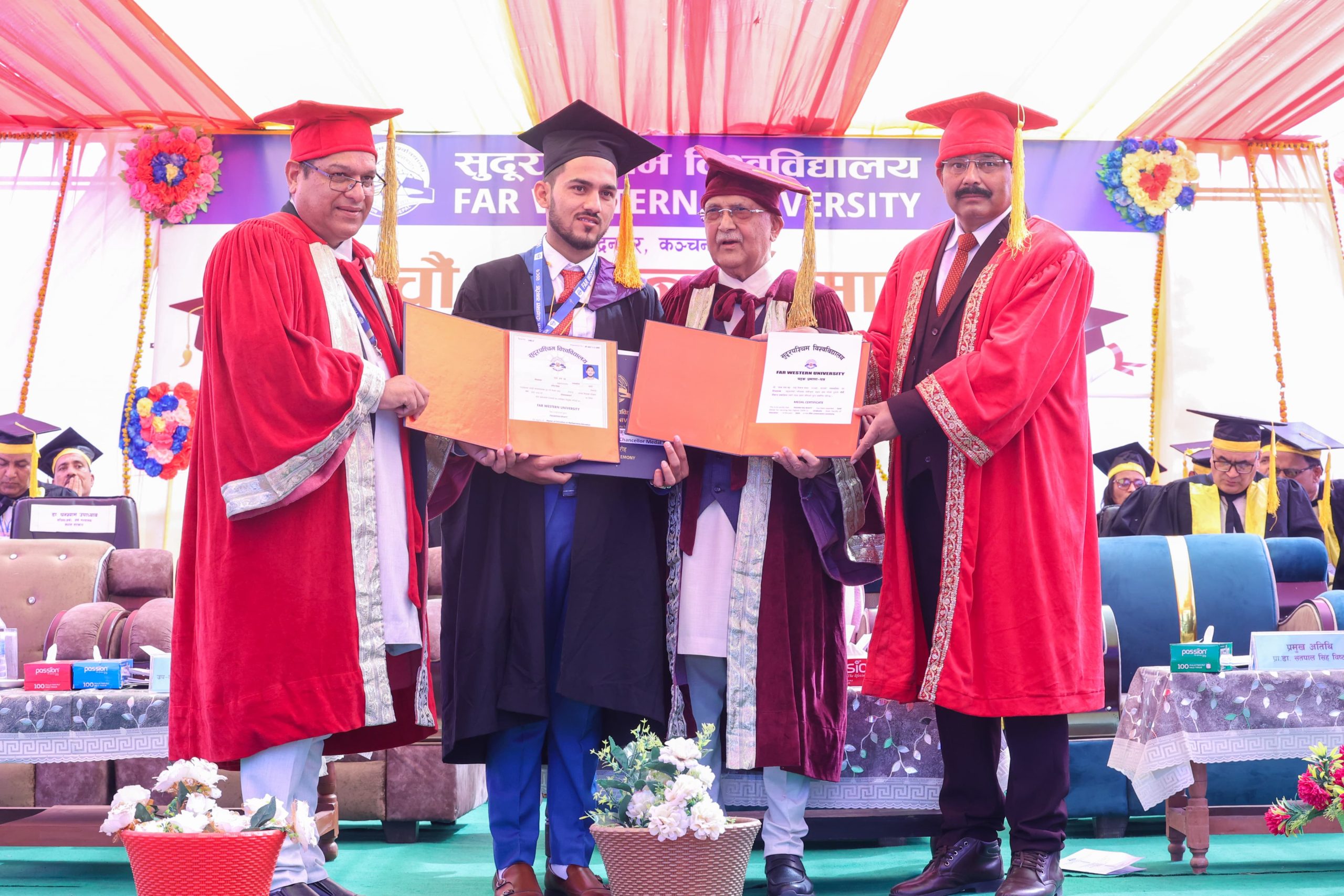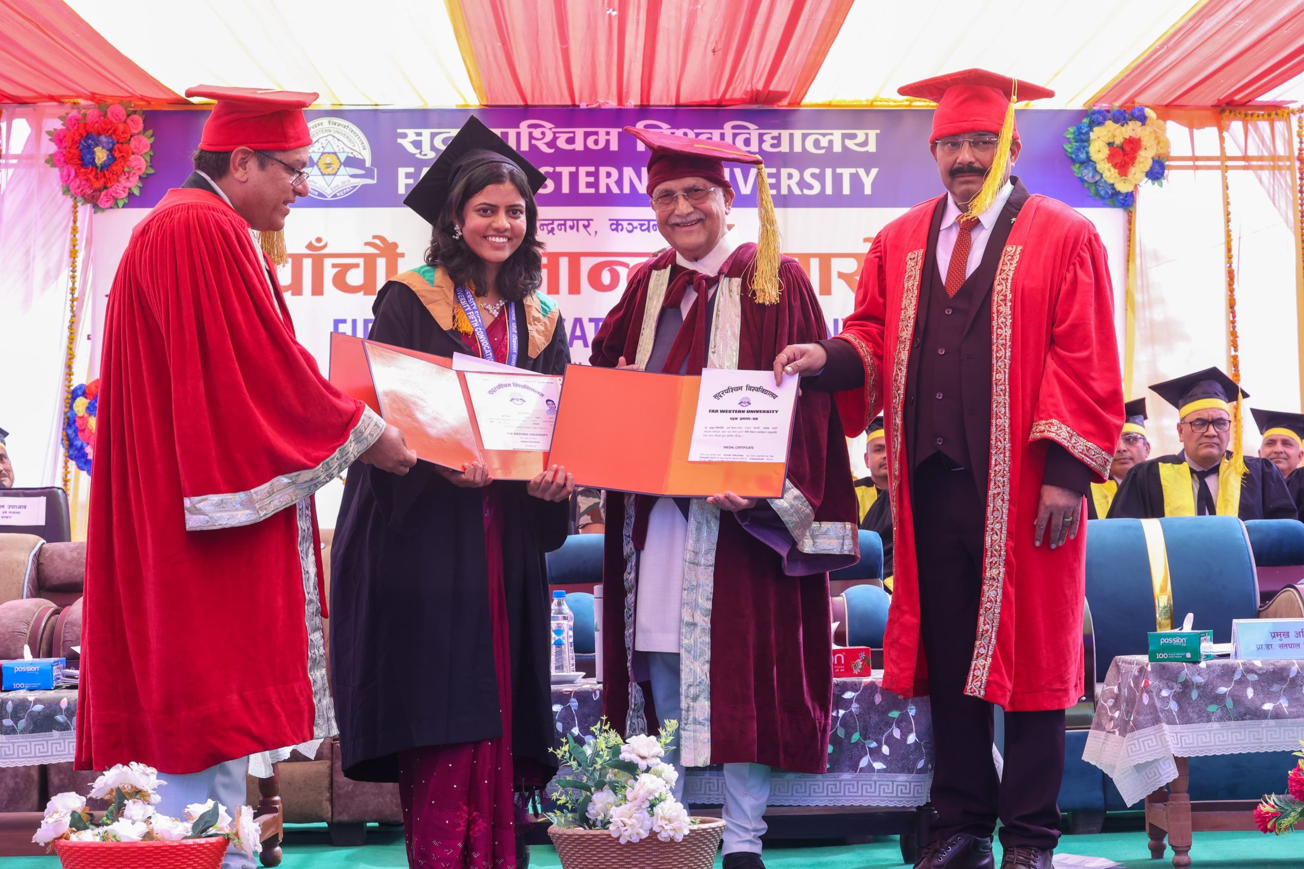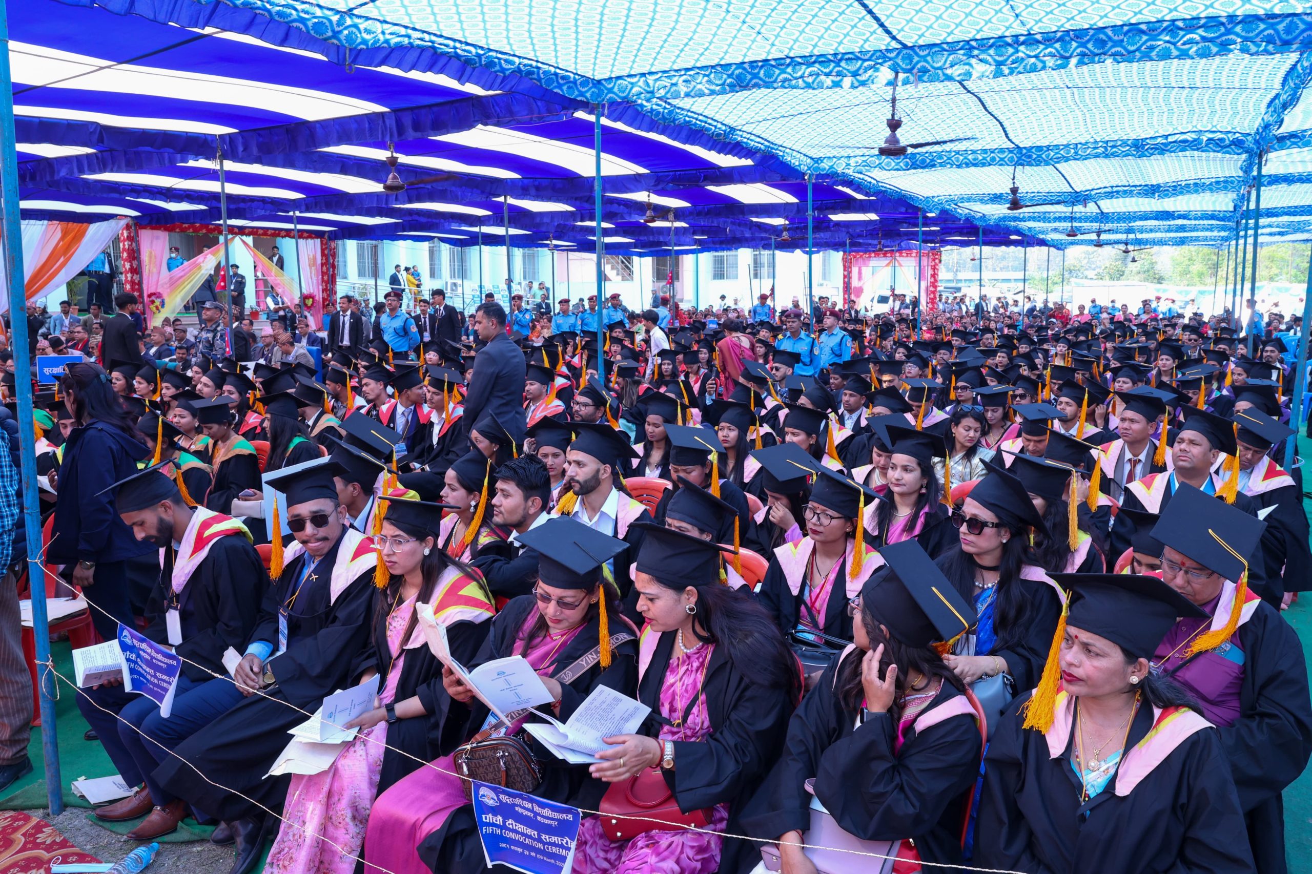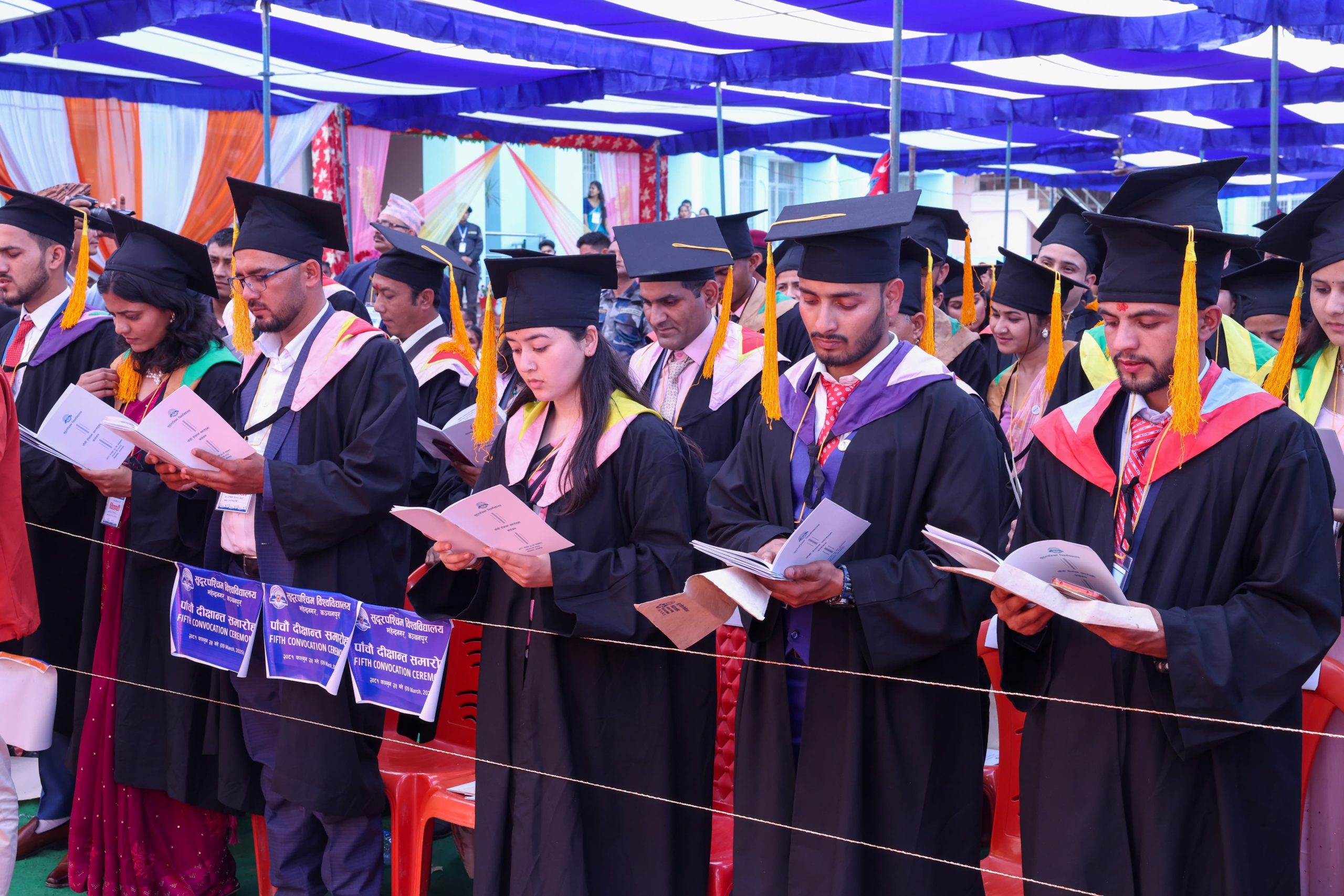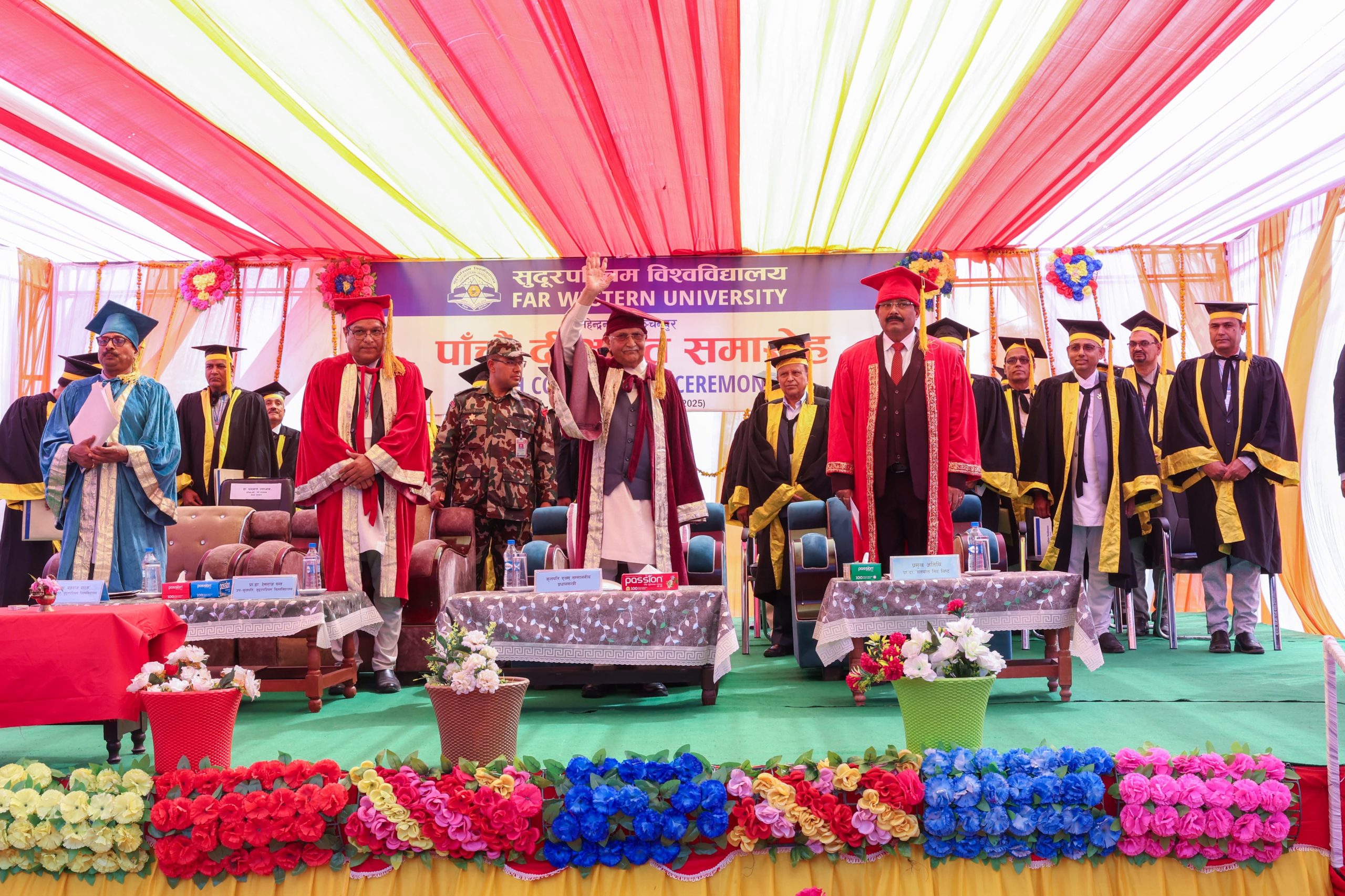 कञ्चनपुर, २५ फागुन । प्रधानमन्त्री एवं कुलपति केपी शर्मा ओलीको उपस्थितिमा आज सम्पन्न सुदूरपश्चिम विश्वविद्यालयको पाँचौँ दीक्षान्त समारोहमा तीन सय ७२ विदार्थी दीक्षित भएका छन् । विश्वविद्यालयका मानविकी तथा समाजशास्त्र, शिक्षा, व्यवस्थापन, इञ्जिनियरिङ र कृषि विज्ञानमा स्नातक र स्नातकोत्तर उपाधि हासिल ती विद्यार्थी दीक्षित भएका हुन् ।