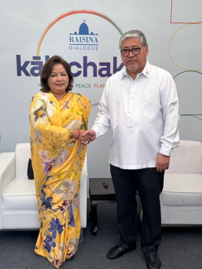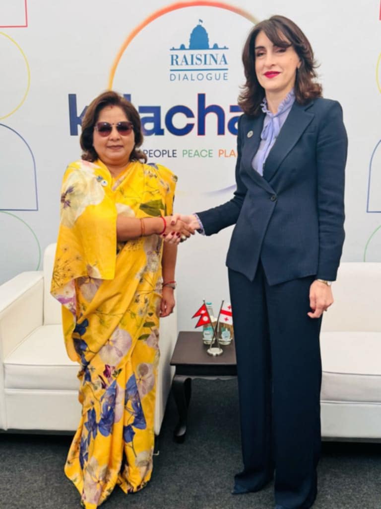 काठमाडौँ । परराष्ट्रमन्त्री डा आरजु राणा देउवाले जर्जियाकी विदेशमन्त्री माका बोचोरिसभिली र फिलिपिन्सका विदेशमन्त्री एनरिक ए. मनालोसँग आज नयाँ दिल्लीमा छुट्टाछुट्टै द्विपक्षीय भेटवार्ता गर्नुभएको छ ।