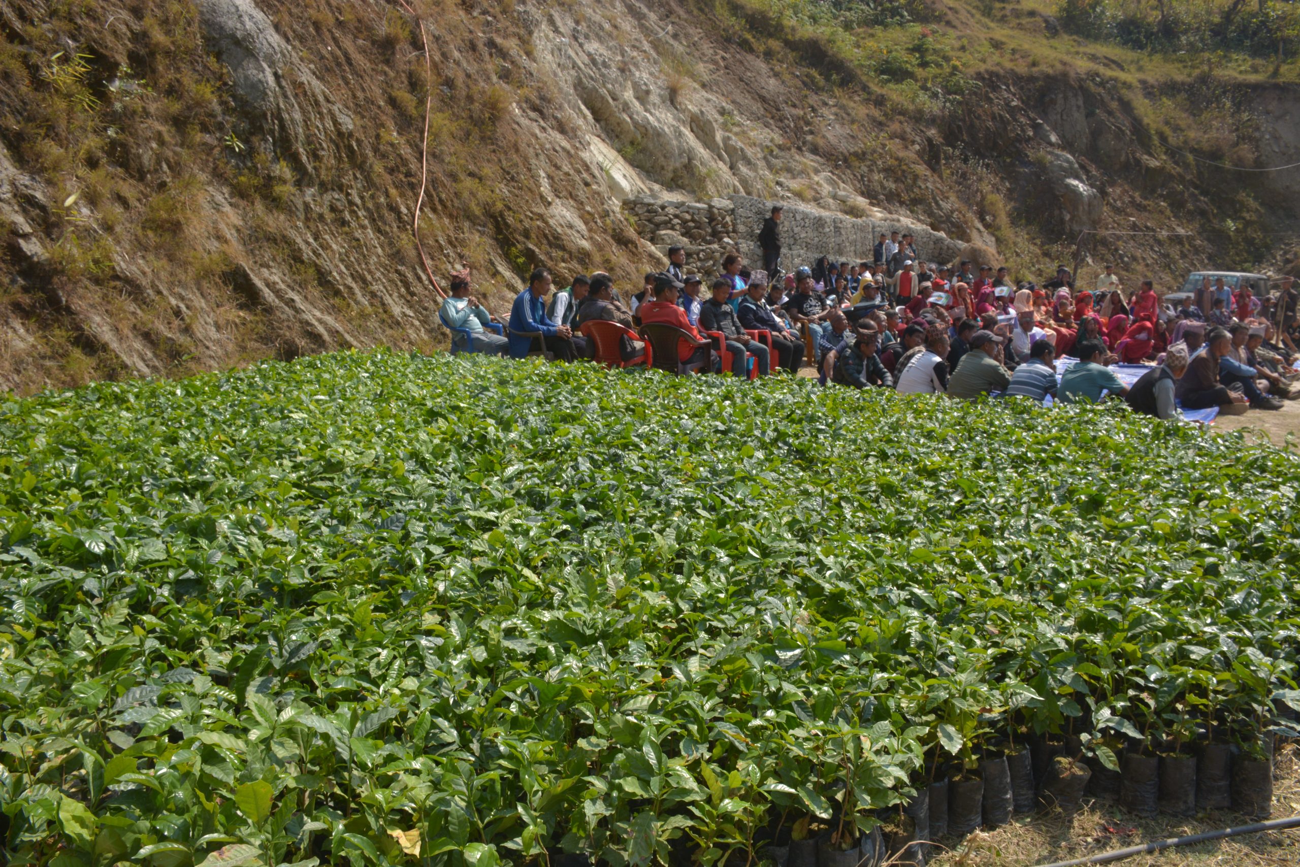बागमती प्रदेशसभा सदस्य रत्नप्रसाद ढकालले ‘एक वडा एक उत्पादन’ कार्यक्रमलाई प्रभावकारी रूपमा कार्यान्वयन गर्ने सन्दर्भमा महाभारत र खानीखोला गाउँपालिका, मण्डदेउपुर नगरपालिका र कोशीपारिका भुम्लु र चौँरीदेउराली गाउँपालिका कफी उत्पादनका निम्ति सम्भावनायुक्त भएकाले स्थानीय तहसँगको साझेदारीमा ती क्षेत्रलाई कफी पकेट इलाकाका रूपमा विकास गर्ने लक्ष्य रहेको बताउनुभयो ।