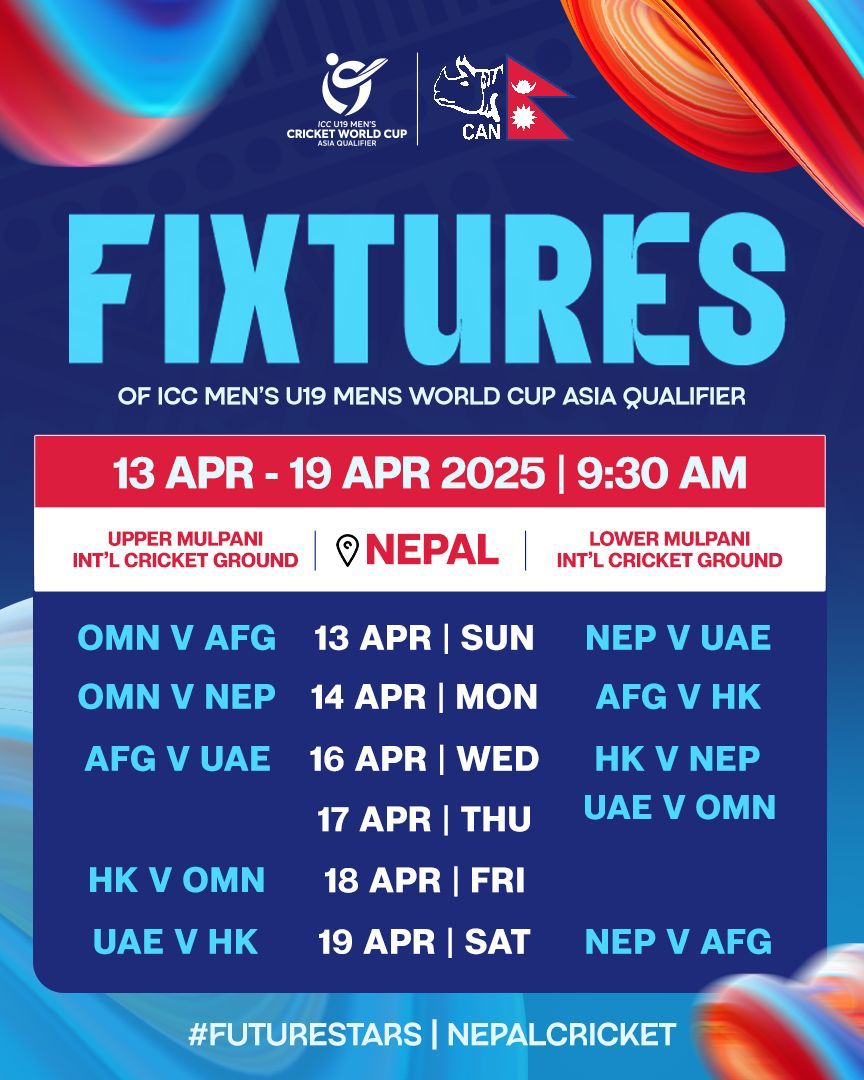अन्डर–१९ पुरुष क्रिकेट विश्वकप एसिया छनोटको तालिका सार्वजनिक