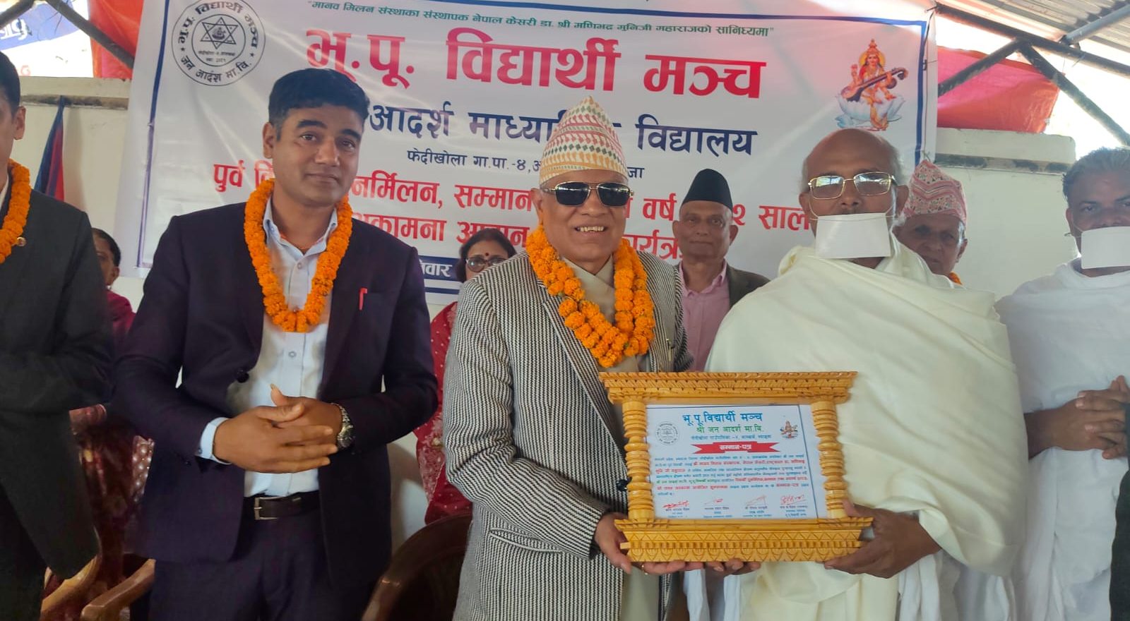 काठमाडौं । स्याङजाको फेदिखोला गाउँपालिका–४, आरुखर्कमा रहेको जन आदर्श माध्यमिक विद्यालय, पूर्व विद्यार्थी मञ्चले पूर्व प्रधानन्याधीश गोपाल पराजुलीलाई सम्मान गरेको छ ।