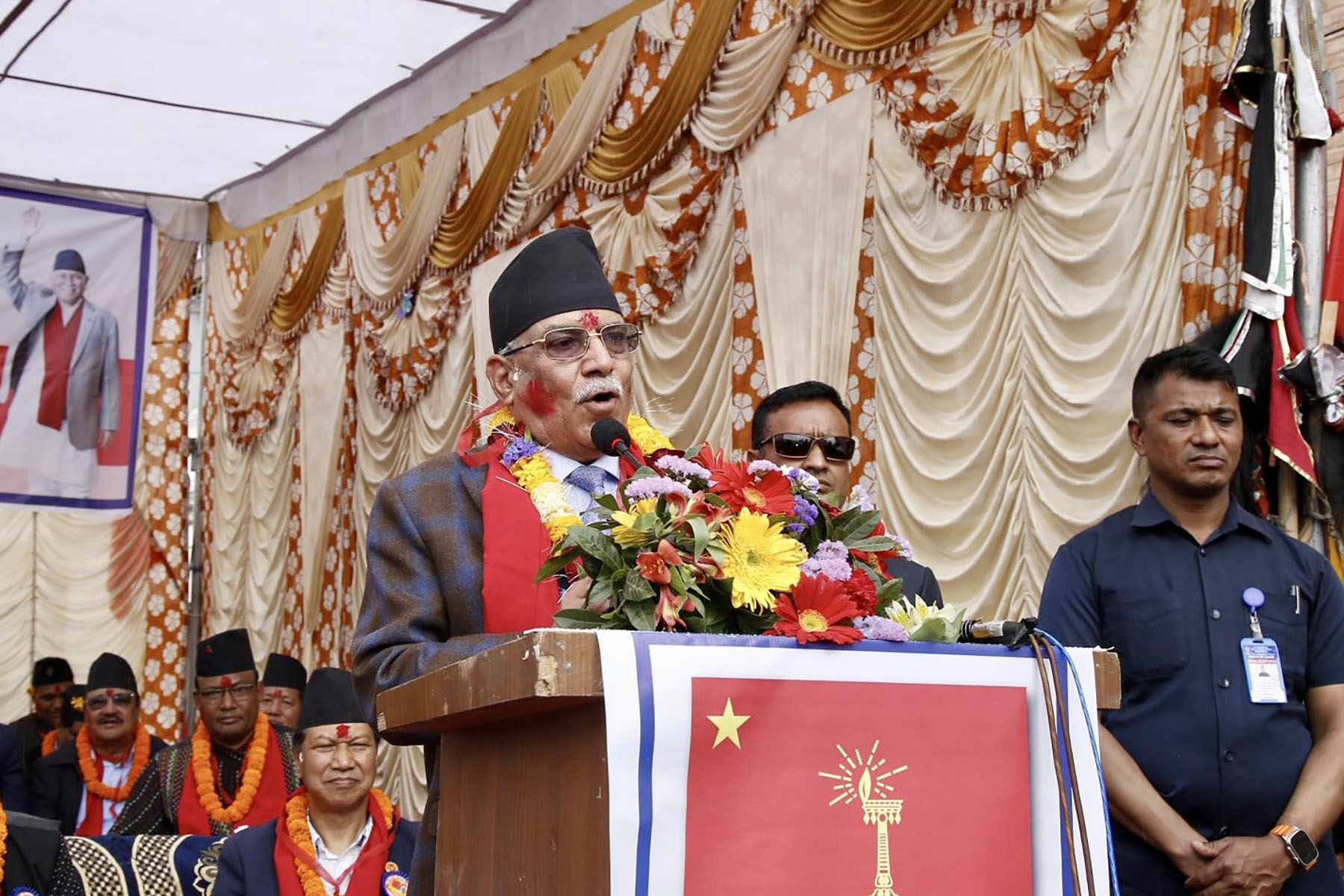 नेपालको लोकतान्त्रिक आन्दोलनलगायत परिवर्तनमा नेवार समुदायले खेलेको भूमिकाको प्रशंसा गर्दै अध्यक्ष दाहालले विभिन्न कारणले संविधान जारी हुनेबेला केही मुद्दा छाडे पनि माओवादी आफ्ना मुद्दाबाट पछि नहटेको धारणा राख्नुभयो ।