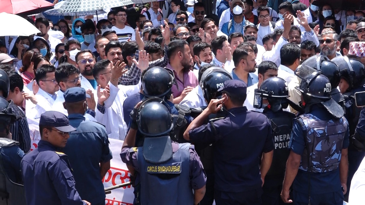 बिहीवार काठमाडौंको माईतीघर मण्डलामा चिकित्सकहरुले प्रदर्शन गरेका हुन् ।