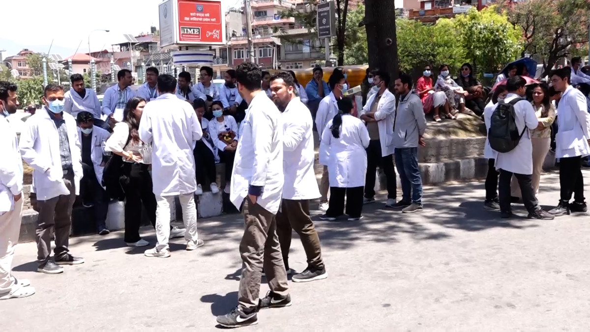 उहाँले भन्नुभयो, ‘चिकित्सा शिक्षा आयोगको १६ औं बैठकले नेपालभर आवासीय चिकित्सकहरुलाई आठौं तहको मेडिकल अधिकृतको तलव सरह निर्वाह भत्ता दिने निर्णय गरेको छ । यो निर्णय माघ २५ गते भएको थियो । त्यसपछि निजी मेडिकल कलेजले हामीले सक्दैनौँ भनिरहेको अवस्था र राज्यले त्यसलाई कार्यान्वयन गर्न तदारुकता नदेखाएको स्थिति थियो । बीचमा आएर जुन म्याचिङ भन्ने एउटा प्रक्रिया हुन्छ । लिखित पास गरिसकेपछि कुन कलेज छान्ने, के छान्ने भन्नेमा सरकारी सिटहरुमा मात्रै म्याचिङ खुल्यो, निजी कलेजहरुमा म्याचिङ खुलेन । के रहेछ भने उहाँहरुले पढाउन सक्दैनौँ भनेको कारणले गर्दा उहाँहरुले म्याचिङ प्रक्रियामा नहाल्निुस् भनेपछि नखुलेको भन्ने जानकारी भयो । पढ्न जानेलाई पनि समस्या भने । उहाँहरु मुद्दामा जानुभयो । जो बिजीको तालिममा छिर्ने भन्ने । जसले काम गरिरहनुभएको थियो, उहाँहरुले पनि निर्णय कार्यान्वयन नहुने भन्ने शंका भएपछि उहाँहरु सडकमा आउनुभयो । २९ दिनसम्म आउँदा पनि कतैबाट सुनुवाई नभएपछि नेपाल चिकित्सक संघले नेतृत्व गरेर अहिले आन्दोलनमा छौँ । सडकमा रहेका चिकित्सकहरुलाई विभिन्न मेडिकल कलेजबाट शारीरिक, शैक्षिक, भौतिक विभिन्न किसिमका कारबाही गर्ने चेतावनी प्रत्यक्ष, अप्रत्यक्ष रुपमा आएका छन् । १६ औं बैठकका निर्णय कार्यान्वयन हुनुपर्छ भन्ने माग हो । उहाँहरुलाई जुन मानसिक तनाव दिइएको छ, यो फिर्ता लिनुपर्छ र ससम्मान काममा फर्किन भन्नुपर्छ भन्ने माग लिएर सडकमा आएका छौँ ।’