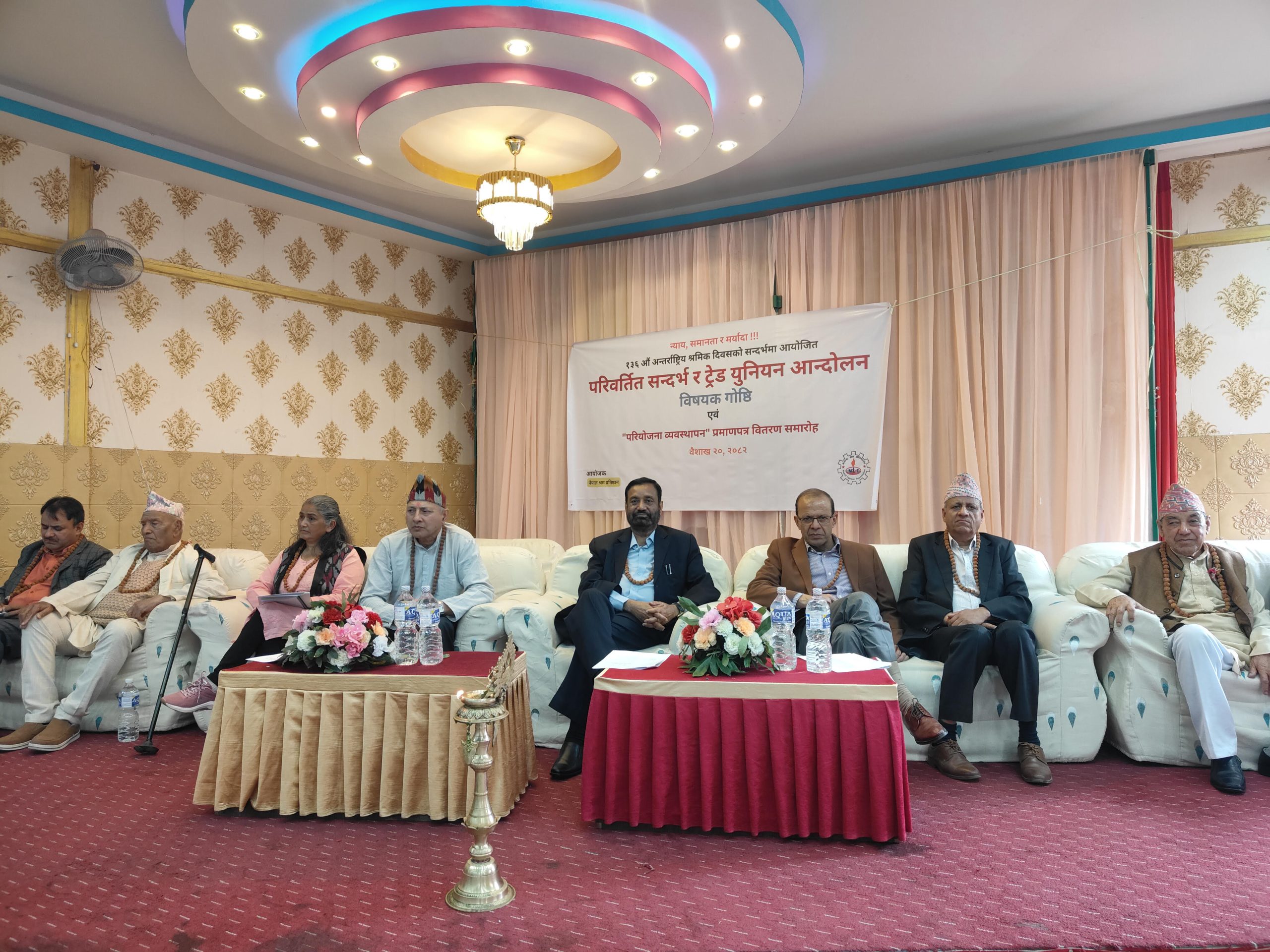 नेपाल श्रम प्रतिष्ठानद्वारा आज यहाँ आयोजित ‘परिवर्तित सन्दर्भ र ट्रेड युनियन आन्दोलन’ विषयक गोष्ठीमा उहाँले लोकतान्त्रिक राजनीतिक व्यवस्था मजबुद बन्न सके मात्र मजदुरको हकहित सुरक्षित हुने बताउनुभयो ।