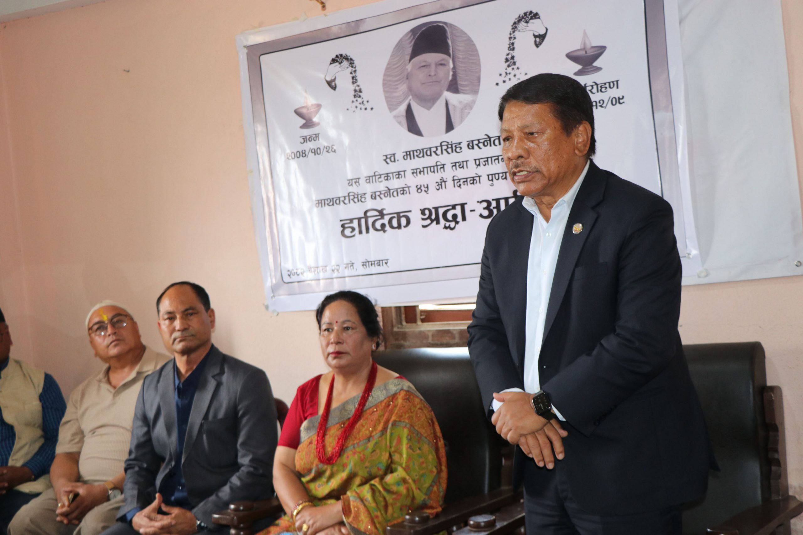 गणेशमान सिंह स्मृति वाटिकाले प्रजातन्त्रका सेनानी एवं वाटिकाका अध्यक्ष स्व माथवरसिंह बस्नेतको ४५औँ दिनको पूण्यतिथिको अवसरमा आज यहाँ आयोजना गरेको श्रद्धाञ्जली कार्यक्रममा उहाँले भन्नुभयो, “पञ्चायती व्यवस्था विरुद्ध आफ्नो नेतृत्वमा कम्युनिष्टसमेतलाई साथमा लिएर प्रजातन्त्र प्राप्तिको आन्दोलनको नेतृत्व गर्नु भएका वीर गणेशमानको जीवन जति सङ्घर्षमय थियो, उहाँको नाममा खुलेका पार्कलगायतका विभिन्न संरचना पनि सङ्घर्षमय भएको छ, के यस्ता संरचनाको संरक्षण गर्ने जिम्मेवारी अरुको होइन र ?”