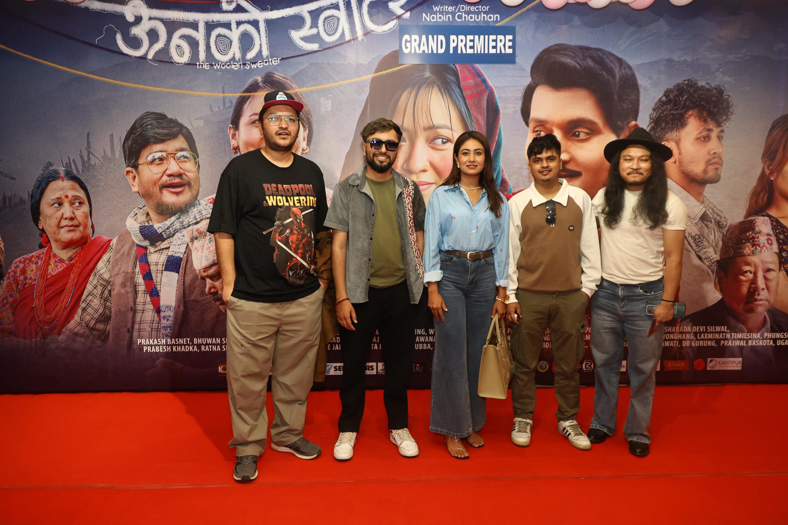काठमाडौं: शुक्रवारदेखि विश्वव्यापी प्रदर्शनमा आउन लागेको नेपाली चलचित्र ‘ऊनको स्वीटर’को भव्य प्रिमियर बुधवार साँझ राजधानी काठमाडौंको कमलपोखरीस्थित बिग मुभिजमा सम्पन्न भयो । एक हजारभन्दा बढी अतिथि, कलाकार, राजनीतिकर्मी, सञ्चारकर्मी, र शुभेच्छुकहरूको उपस्थितिमा सम्पन्न प्रिमियरले चलचित्रप्रति उच्च उत्साह देखाएको छ ।